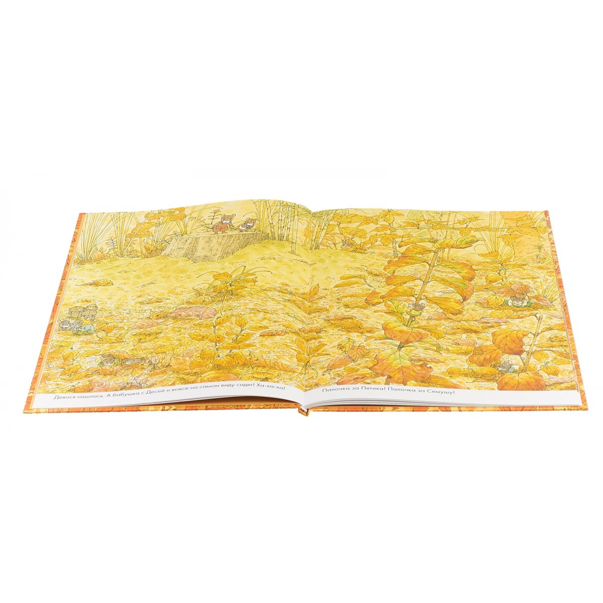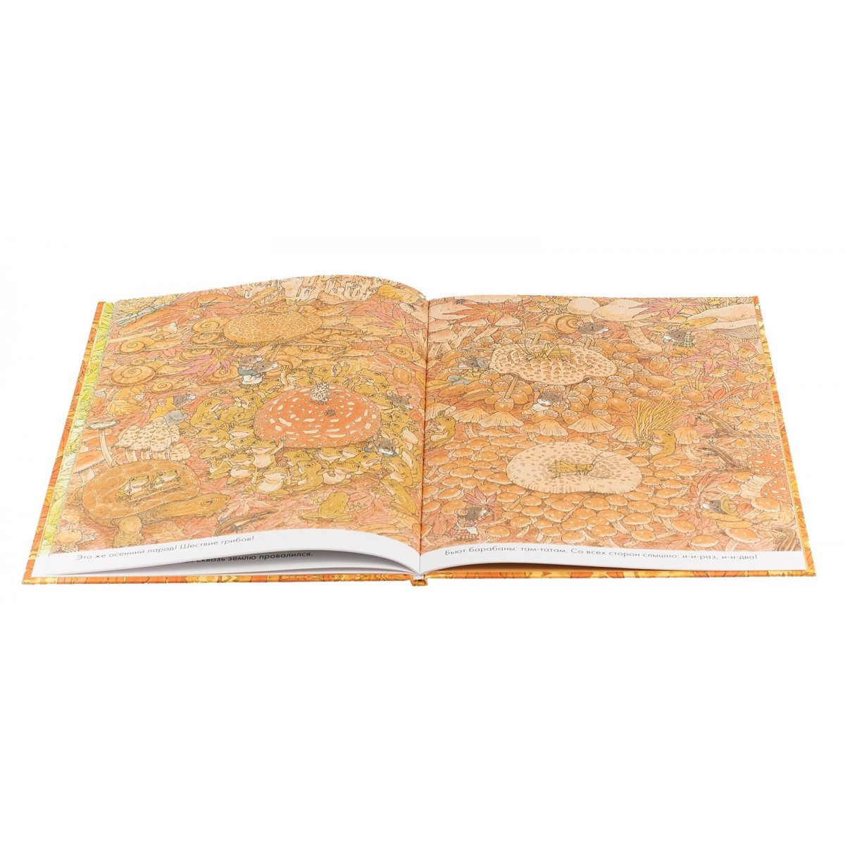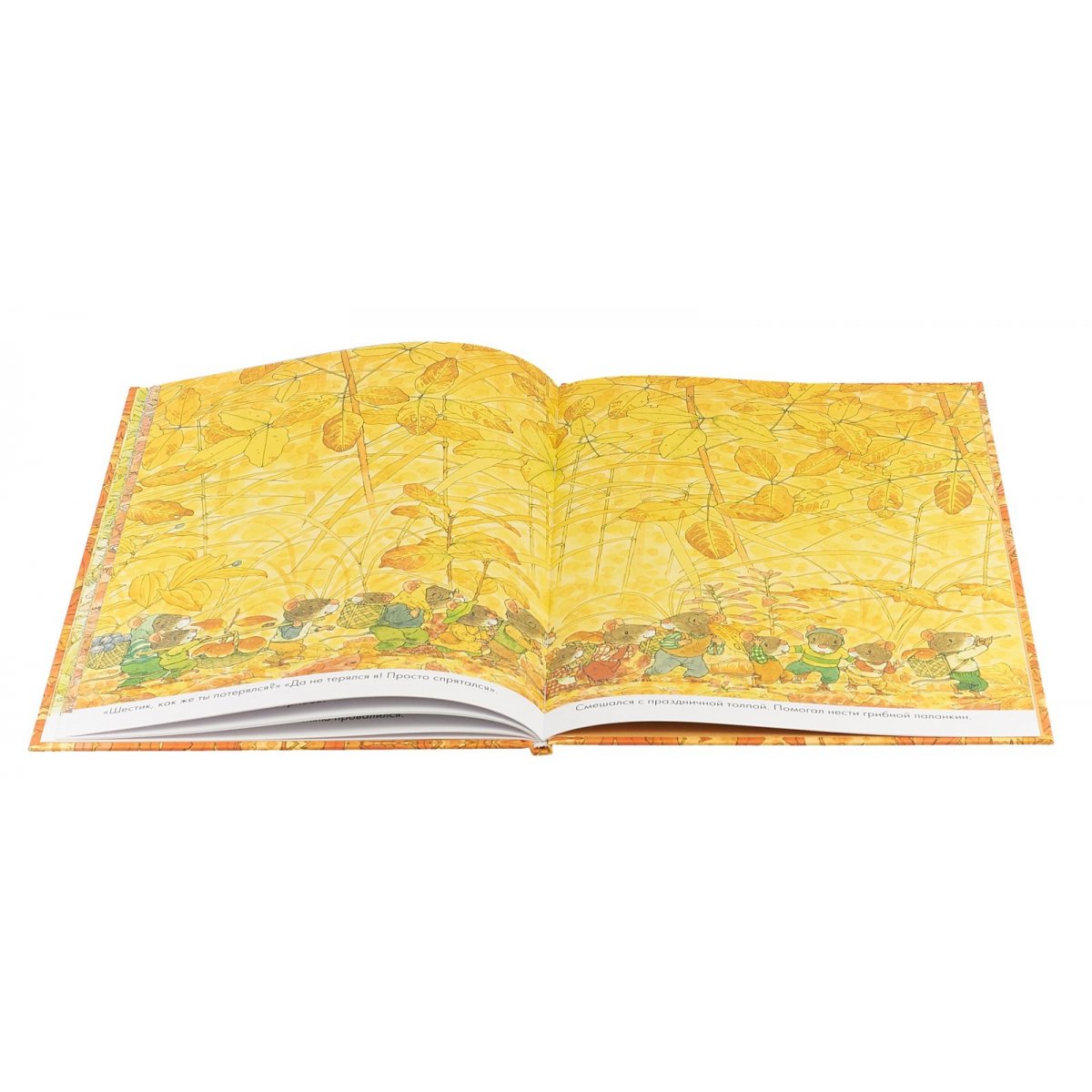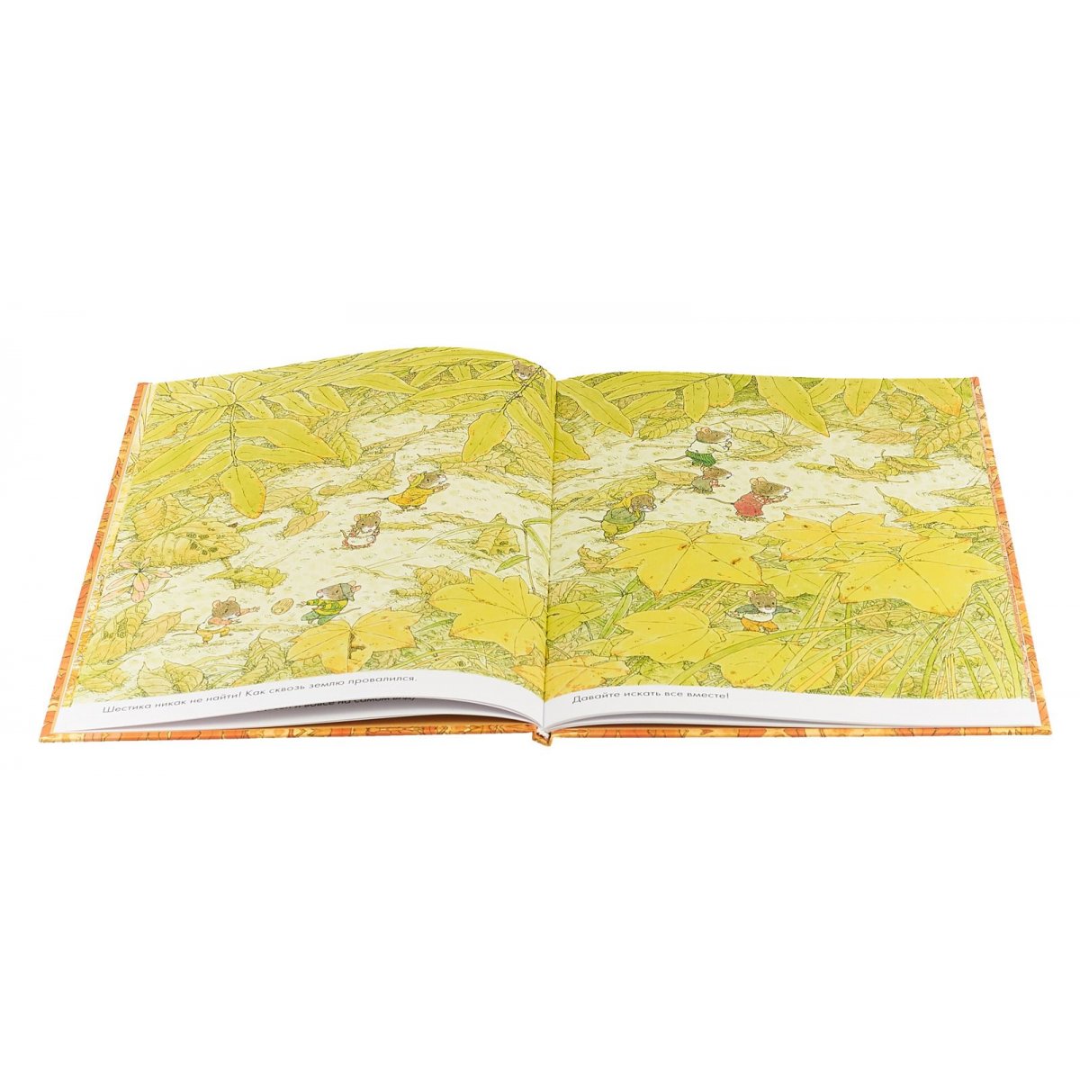 Семейство мышат играет в прятки в ярком осеннем лесу — легко спрятаться под листьями, за пеньками, между ветвей. Но вот все нашлись, а где же Шестик? В поисках малыша мышки заходят все глубже в лес и становятся свидетелями потрясающего зрелища — осеннего парада разноцветных грибов, плодов, ягод.