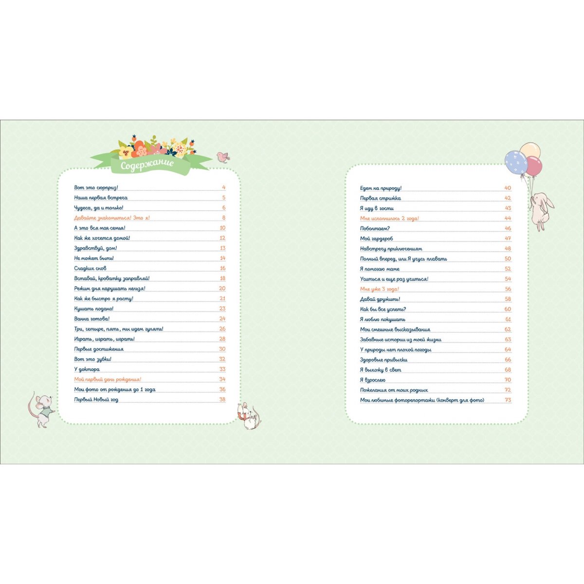 Этот альбом поможет сохранить в памяти неповторимые моменты - первую улыбку малыша, его первые шаги и смешные словечки, первые победы и забавные случаи. Заполняя страницы альбома и вклеивая фотографии, вы создадите уникальную книгу о том, как растет ваш ребенок, чтобы спустя годы уже вместе с ним вернуться в это чудесное время. Альбом станет прекрасным подарком молодым родителям.