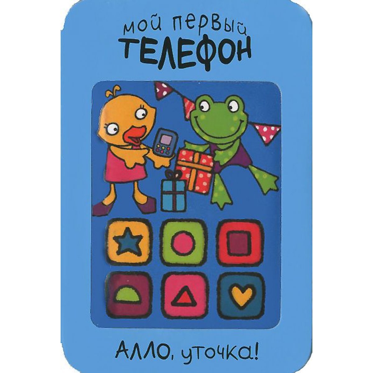 С книгой "Алло, уточка!" вашему малышу очень понравится играть ведь она так похожа на телефон мамы и папы - мягкая вставка на обложке имитирует экран смартфона с кнопками.