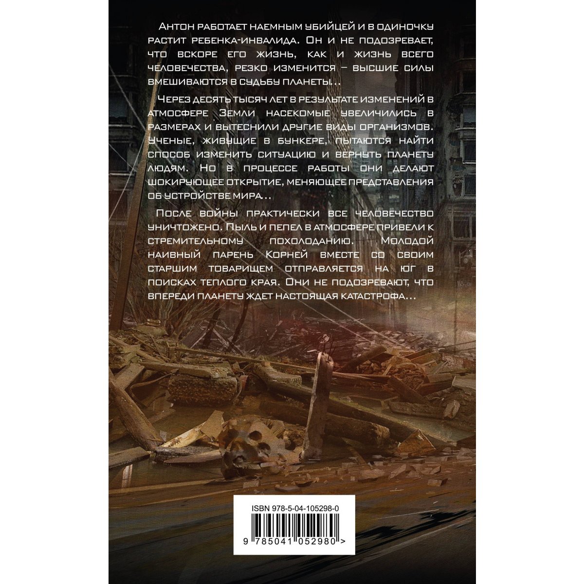 Три катастрофических сценария нашего грядущего от суперпопулярного видеоблогера Max Maximov! Откроется ли вход в рай грешному человеку, если все свои силы он тратит на уход за дочерью-инвалидом? А – человекоподобному роботу? Девочка-инвалид Ева готова на все, лишь бы помочь отцу и любимому роботу спасти свои души… В мире далекого будущего люди вынуждены сражаться с гигантскими насекомыми, захватившими все, некогда принадлежавшие человечеству территории. Лишь в громадном подземном бункере, именуемом Укрытие, начиненном новейшими технологическими новинками, человек может оставаться в относительной безопасности, не рискуя быть разорванным жвалами чудовищного муравья или парализованным ядом осы, размером с тигра. Ученые в бункере ищут выход, моделирую ситуацию на суперкомпьютере, у которого есть свои планы… Земная цивилизация разрушена ядерной войной. Люди предельно жестоки друг другу. Каннибализм становится обычным делом. С всеобщим озверением не может примириться астроном Корней. Он считает, что даже в самых жесточайших условиях нельзя терять человеческий облик. Но жизнь, как всегда, оказывается гораздо сложнее…