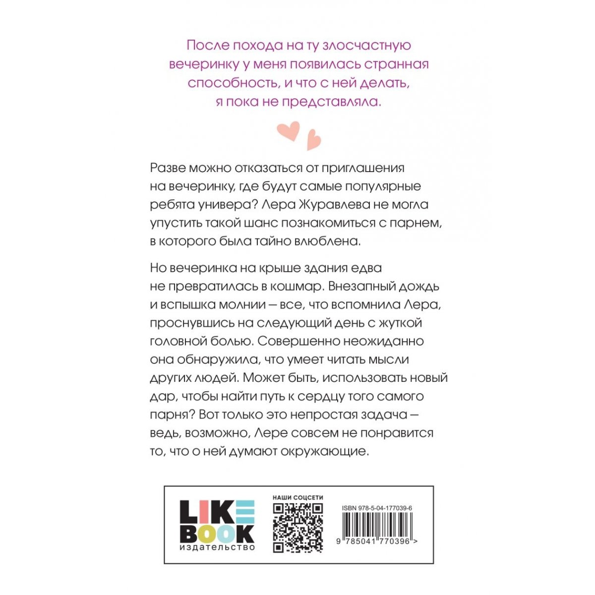 Но вечеринка на крыше здания едва не превратилась в кошмар. Внезапный дождь и вспышка молнии — все, что вспомнила Лера, проснувшись на следующий день с жуткой головной болью. Совершенно неожиданно она обнаружила, что умеет читать мысли других людей. Может быть, использовать новый дар, чтобы найти путь к сердцу того самого парня? Вот только это непростая задача — ведь, возможно, Лере совсем не понравится то, что о ней думают окружающие.