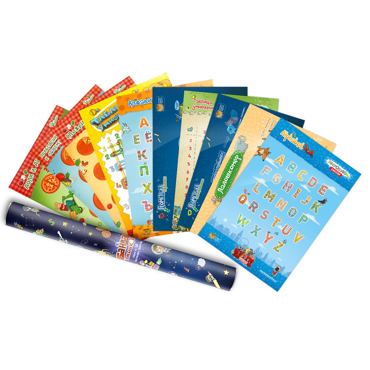 В состав набора входит 10 ярких плакатов размером 34х50 см, упакованных в красивый тубус.