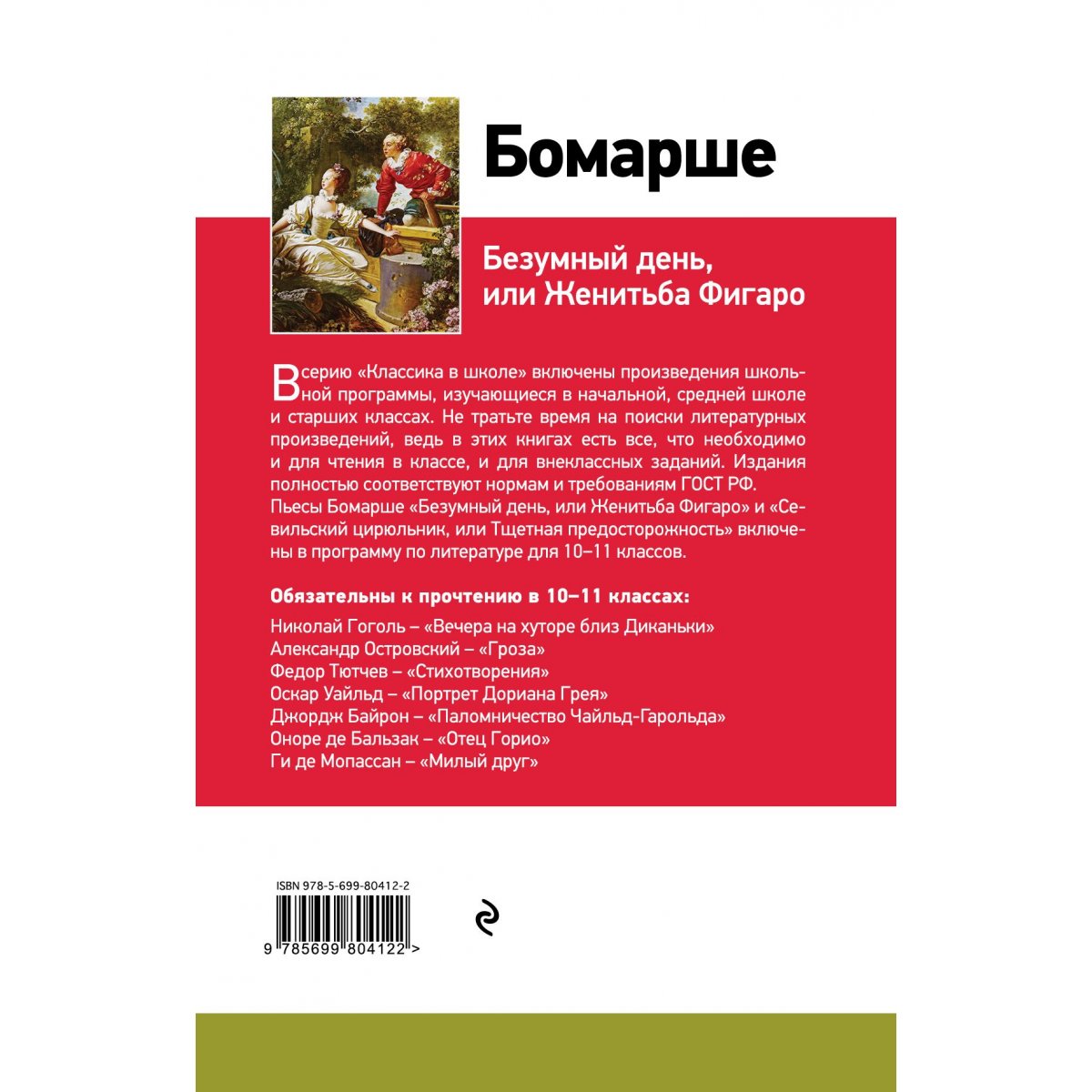 Перед вами книга из серии "Классика в школе", в которой собраны все произведения, изучающиеся в начальной школе, средних и старших классах. Не тратьте время на поиски литературных произведений, ведь в этих книгах есть все, что необходимо прочесть по школьной программе: и для чтения в классе, и для внеклассных заданий. Избавьте своего ребенка от длительных поисков и невыполненных уроков. Пьесы Бомарше "Безумный день, или Женитьба Фигаро" и "Севильский цирюльник, или Тщетная предосторожность" включены в программу по литературе для 10-11 классов.
