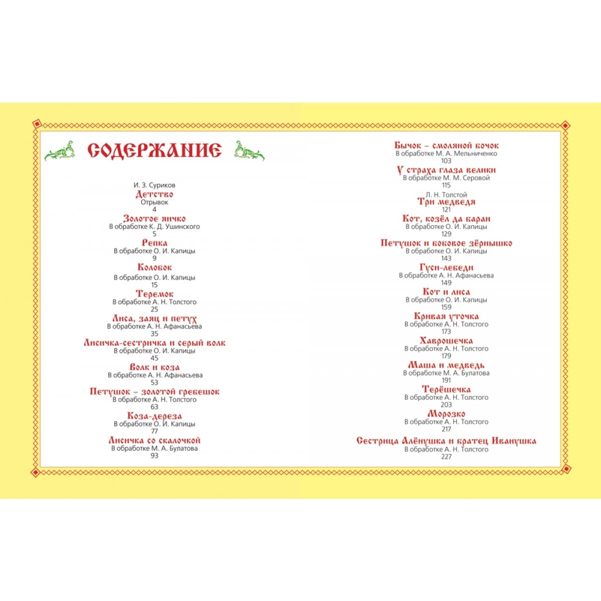 В книгу вошли самые любимые русские народные сказки: "Репка", "Колобок", "Золотое яичко", "Волк и коза", "Теремок", "Лисичка со скалочкой", "Гуси-лебеди", "Хаврошечка", "Морозко" и другие.