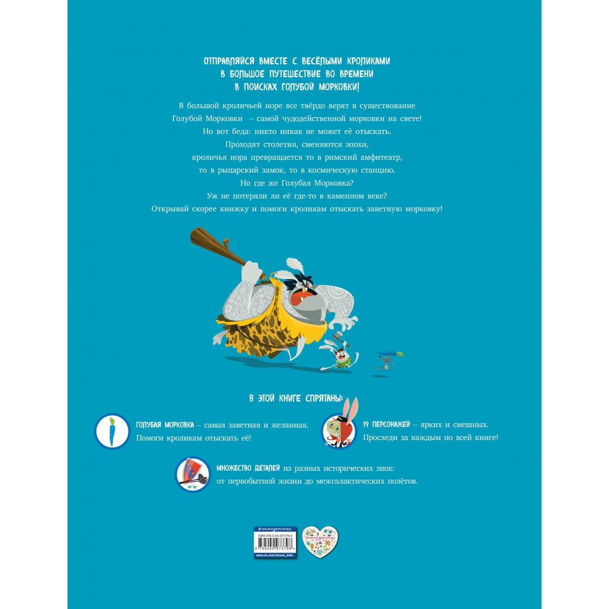 Яркая увлекательная книга современного французского иллюстратора детских книг, дизайнера Себастьяна Теллески – замечательное развлечение и для детей, и для взрослых. Читатели отправятся в красочное путешествие от древних времен до современности, чтобы отыскать затерянную в веках таинственную Голубую Морковку. В потрясающий кроличий мир вписаны реальные исторические вещи: веселые кролики добывают огонь, строят пирамиды, отправляются в дальние плавания, летают в космос и следуют за заветной мечтой. Про все их приключения во времени можно узнать в этой забавной книге – и попутно освежить свои знания по истории.