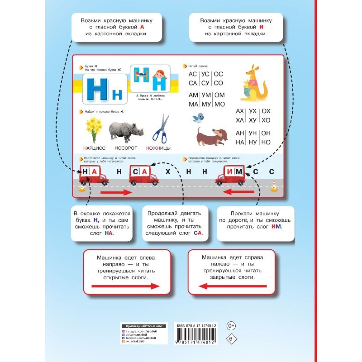 "Букварь-тренажёр для малышей" автора бестселлеров, известного специалиста в области речевого развития детей Н. А Ткаченко. В интерактивной книжке 20 картонных машинок с гласными буквами алфавита, которые помогут ребёнку шаг за шагом в игровой форме научиться складывать буквы в слоги и слова, а значит — научиться читать. Для дошкольного возраста.