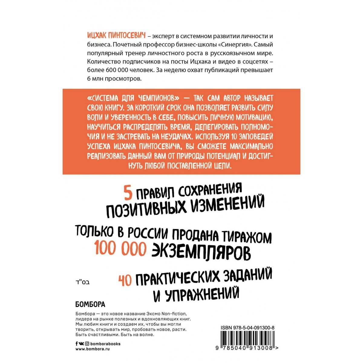 Впервые последние открытия в области психологии, лучшие методики в области личностного роста и менеджмента, секреты подготовки олимпийских чемпионов и законы мироздания из Каббалы объединены в уникальной авторской программе самосовершенствования Ицхака Пинтосевича. Вместо советов - готовая программа действий. Читай эту книгу по 30 минут в день, и ты сможешь укрепить уверенность в себе, добиваться поставленных целей, правильно распределять свое время, преодолевать неудачи, делегировать полномочия, управлять другими. Среди клиентов Ицхака - крупнейшие мировые корпорации Procter & Gamble, Avon, Master Card, Deloitte, а также политики, бизнесмены и "звезды" шоу-бизнеса. Страница Isaac Pintosevich Systems в Facebook насчитывает более 80 000 подписчиков. Специальный бонус для читателей - персональный коучинг от Ицхака Пинтосевича. Подробности - внутри книги.