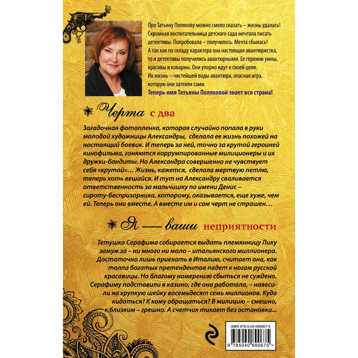 "Черта с два"Загадочная фотопленка, которая случайно попала в руки молодой художницы Александры, сделала ее жизнь похожей на настоящий боевик. И теперь за ней, точно за крутой героиней кинофильма, гоняются коррумпированные милиционеры и их дружки-бандиты. Но Александра совершенно не чувствует себя "крутой"… Жизнь, кажется, сделала мертвую петлю, теперь хоть вешайся. И тут на Александру сваливается ответственность за мальчишку по имени Денис – сироту-беспризорника, которому, оказывается, еще хуже, чем ей. Теперь они вместе. А вместе им и сам черт не страшен…"Я – ваши неприятности"Тетушка Серафима собирается выдать племянницу Лику замуж за - ни много ни мало - итальянского миллионера. Достаточно лишь приехать в Италию, считает она, как толпа богатых претендентов падет к ногам русской красавицы. Но благому намерению сбыться не суждено.