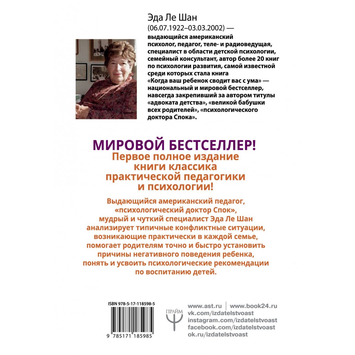 Перед вами первое полное издание книги классика практической педагогики и психологии, подготовленное специально для новой российской аудитории. Выдающийся американский педагог, "психологический доктор Спок", мудрый и чуткий специалист Эда Ле Шан анализирует типичные конфликтные ситуации, возникающие практически в каждой семье, помогает родителям точно и быстро установить причины негативного поведения ребенка, понять и усвоить психологические рекомендации по воспитанию детей.Книга Эды Ле Шан будет интересна и полезна не только родителям, но и профессиональным психологам, психотерапевтам и консультантам по семейным отношениям.