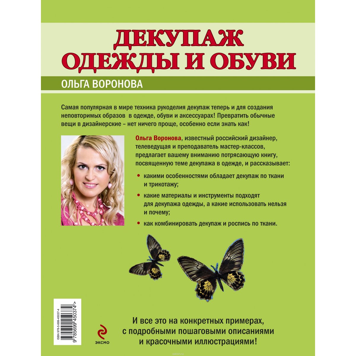 Новая книга от известного российского дизайнера Ольги Вороновой посвящена уникальной разновидности декупажа - декупажу одежды и обуви. Оказывается, и такое возможно! Какие материалы и инструменты нужны для этой техники, как комбинируется декупаж с росписью, в каких стилях можно декорировать свой гардероб - вот о чем эта книга. Большая галерея работ с пошаговыми описаниями изготовления и красочными иллюстрациями поможет вам с легкостью освоить эту технику и создать свои шедевры декораторского искусства.