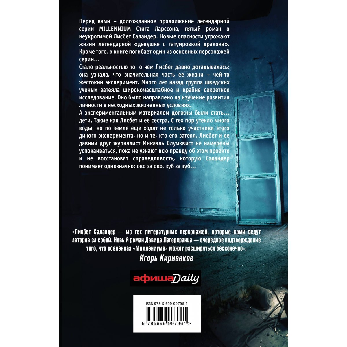 "Девушка с татуировкой дракона" возвращается в пятом романе культовой серии MILLENNIUM - "Девушка, которая искала чужую тень". О книге: Лисбет Саландер вновь объединяется с журналистом Микаэлем Блумквистом - на этот раз чтобы выяснить подробности об экспериментах, которые проводили много лет назад шведские ученые. Их целью было выяснить, как формируется личность в разных условиях, и потому они взялись изучать детей, в том числе Лисбет и ее сестру. Прошло время, но организаторы исследования живы и здоровы - и Лисбет это совершенно не устраивает.Жанр: детектив, триллер.Особенности: Давид Лагеркранц блестяще продолжает серию, начатую Стигом Ларссоном. Жестокие зловещие сюжеты, неизменная интрига, захватывающее повествование - из этих слагаемых складывается книга, от которой невозможно оторваться. Кроме того, именно в этом романе суждено погибнуть одному из основных персонажей серии.Об авторе: Давид Лагеркранц - известный шведский журналист и публицист. Мировую известность ему принесла биография знаменитого шведского футболиста Златана Ибрагимовича. В 2013 году издательство Norstedts поручило Давиду продолжить культовую серию романов о "девушке с татуировкой дракона" покойного журналиста и писателя Стига Ларссона..