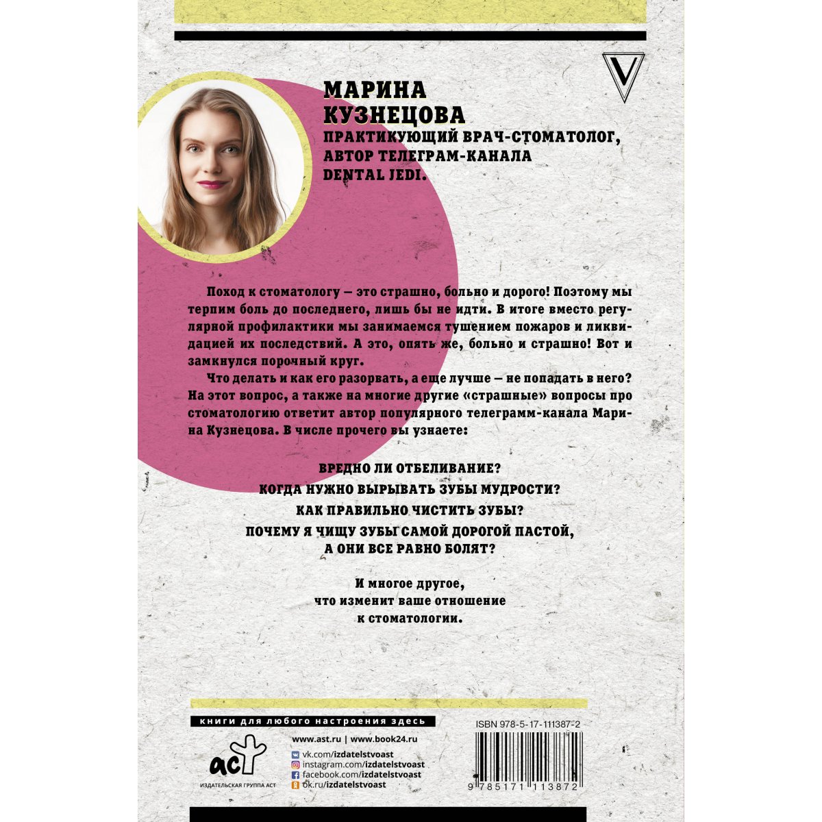 Поход к стоматологу – это страшно, больно и дорого! Поэтому мы терпим боль до последнего, лишь бы не идти. В итоге вместо регулярной профилактики мы занимаемся тушением пожаров и ликвидацией их последствий. А это, опять же, больно и страшно! Вот и замкнулся порочный круг. Что делать и как его разорвать, а еще лучше - не попадать в него? На этот вопрос, а также на многие другие "страшные" вопросы про стоматологив ответит автор популярного телеграмм-канала Марина Кузнецова. В числе прочего вы узнаете: Вредно ли отбеливание? Когда нужно вырывать зубы мудрости? Как правильно чистить зубы? Почему я чищу зубы самой дорогой пастой, а они все равно болят? И многое другое, что изменит ваше отношение к стоматологии.