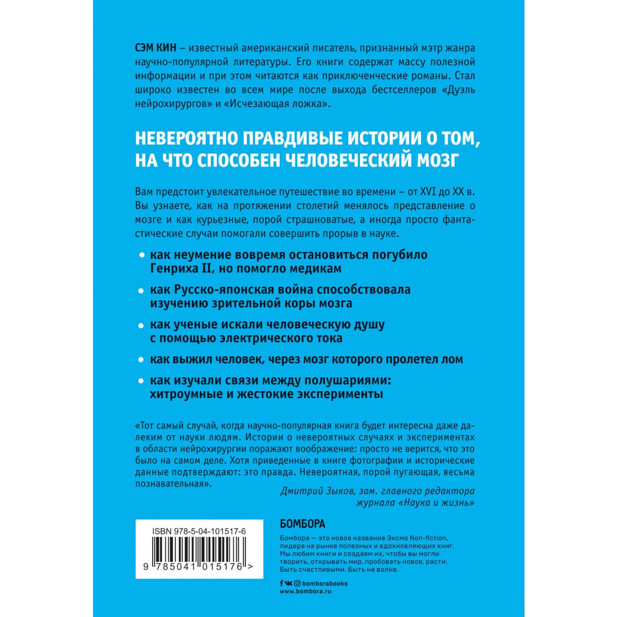 Сэм Кин, известный американский писатель, признанный мэтр жанра научно-популярной литературы, предлагает увлекательное путешествие во времени. Вы узнаете, как на протяжении столетий менялось представление о мозге и как курьезные, порой страшноватые, а иногда и просто фантастические случаи помогали совершить прорыв в науке и медицине. Каждая глава книги представляет собой невероятную, увлекательную и правдивую историю о том, на что способен мозг человека, если что-то (или кто-то) воздействует на него со стороны, будь то болезнь, скальпель хирурга или… железный лом.
