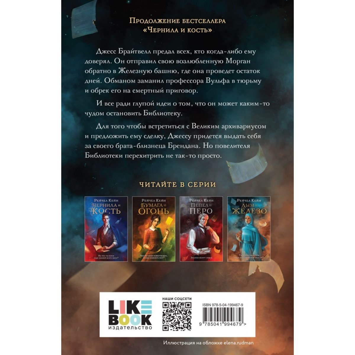 Четвертая книга популярной на весь мир фэнтези-серии «Великая библиотека» Рейчел Кейн. Продолжение романов «Чернила и кость», «Бумага и огонь» и «Пепел и перо».