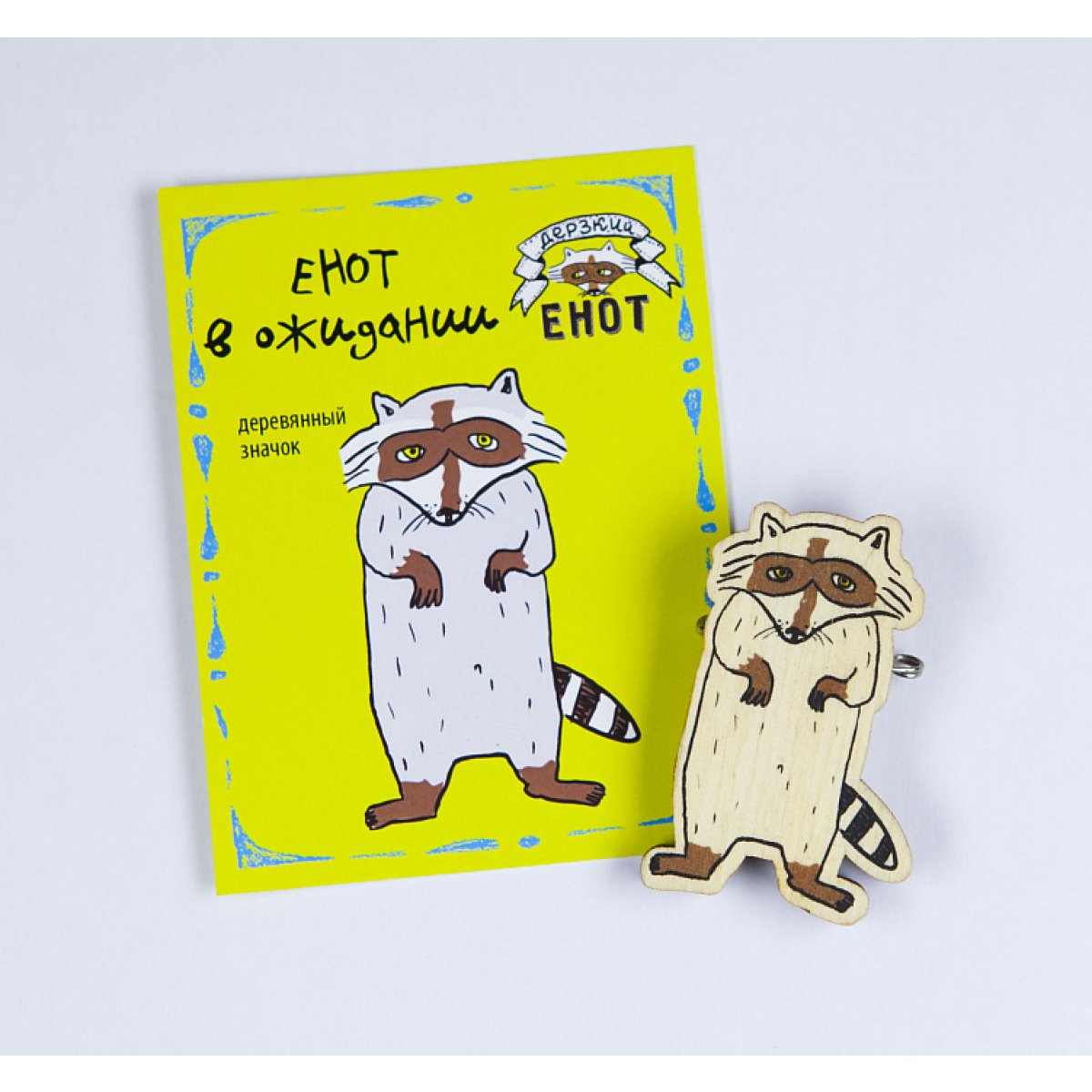 - Енот в ожидании (деревянный значок в упаковке)