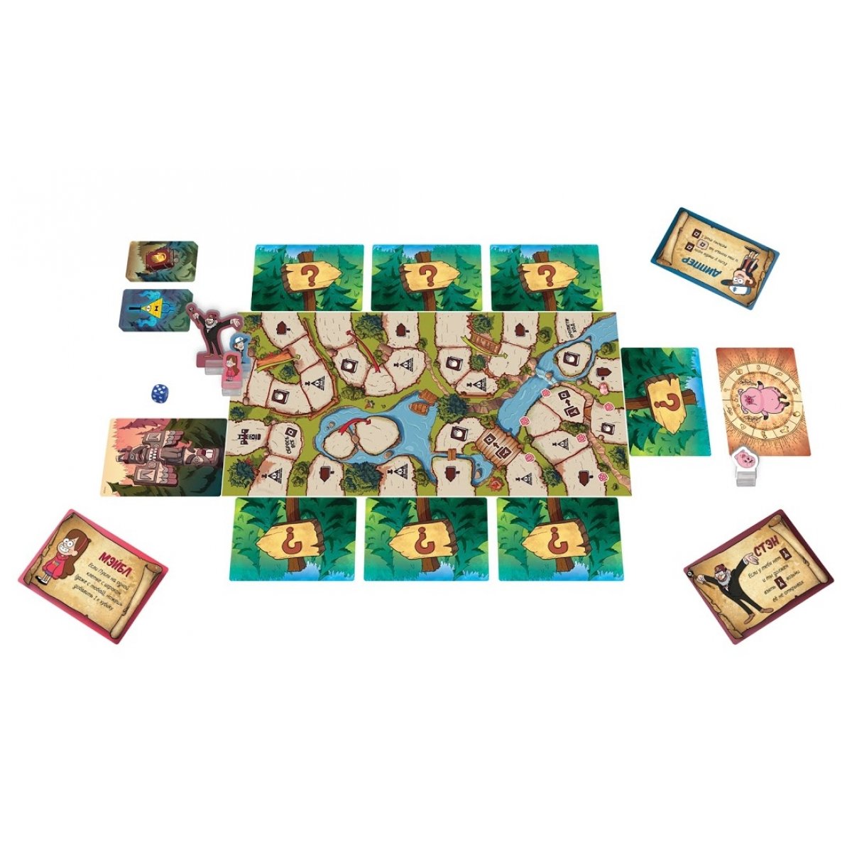 В настольной игре "Гравити Фолз: Спасти Пухлю" участники по очереди бросают кубик и передвигают свои фишки. Перемещаясь по клеткам и выполняя действия, указанные на картах, игроки, рано или поздно, находят пропавшего поросёнка.
