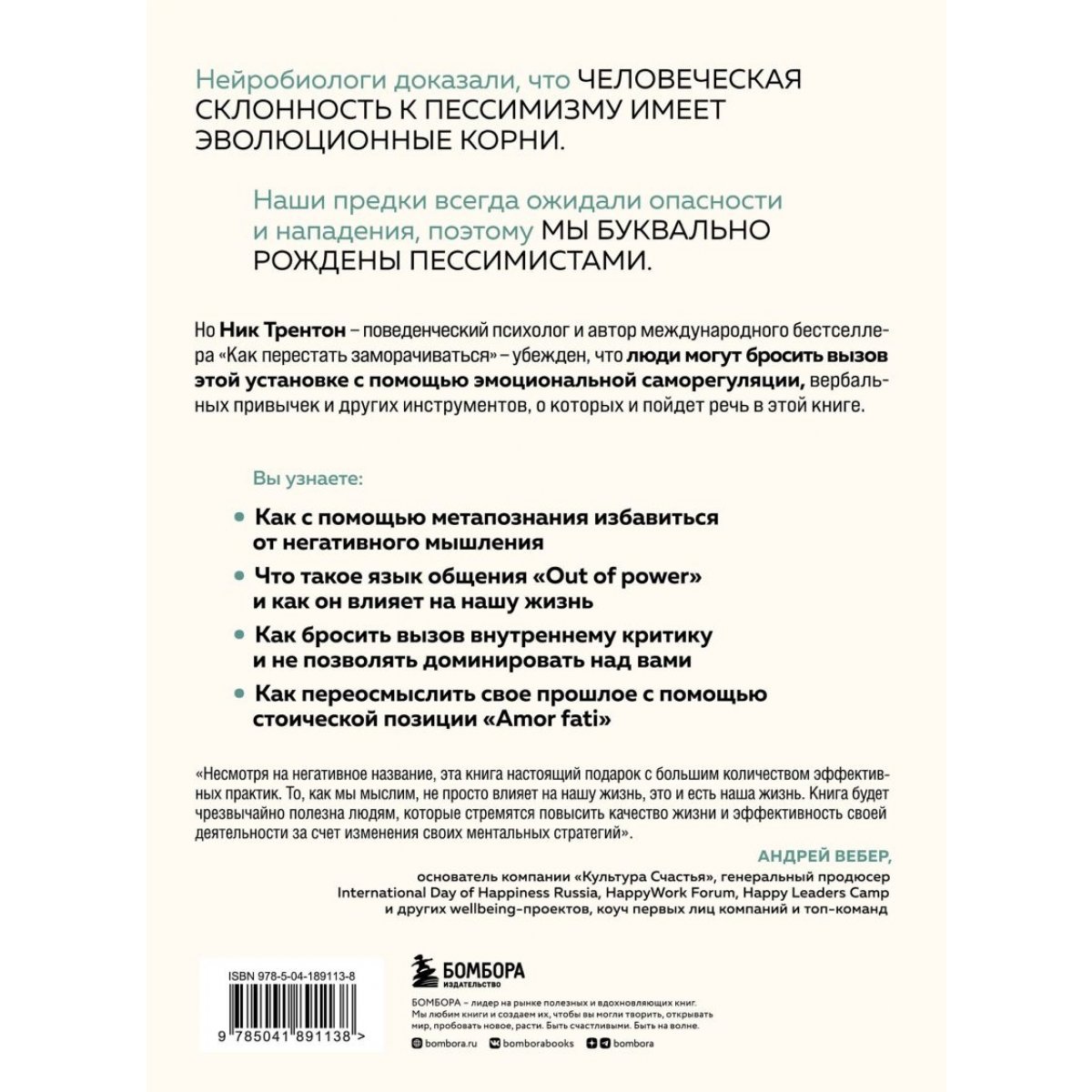 Почему некоторые люди так склонны к негативному мышлению, пессимизму и чувству поражения? Почему некоторые из нас зацикливаются на тревогах и впадают в неуверенность в себе, в то время как другие этого не делают? Почему некоторые люди борются с депрессией и плохим настроением всю свою жизнь, в то время как другие, кажется, черпают из, казалось бы, неисчерпаемого источника оптимизма? Об этом и многом другом вы узнаете из этой книги.