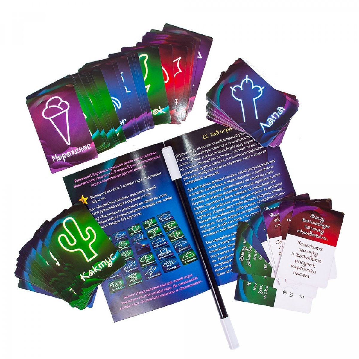 Комплектация: волшебная палочка: 1 шт, игровые карточки: 96 шт, правила игры: 1 шт.