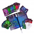 Разложи карточки, входящие в набор, в произвольном порядке рисунками наружу. Игрок, играющий за волшебника, при помощи волшебной палочки рисует в воздухе картинку, изображенную на любой из карточек. Задачей остальных игроков является угадать, какой из рисунков изобразил волшебник и отыскать его среди разложенных карточек. Игрок, отгадавший правильно рисунок становится волшебником.