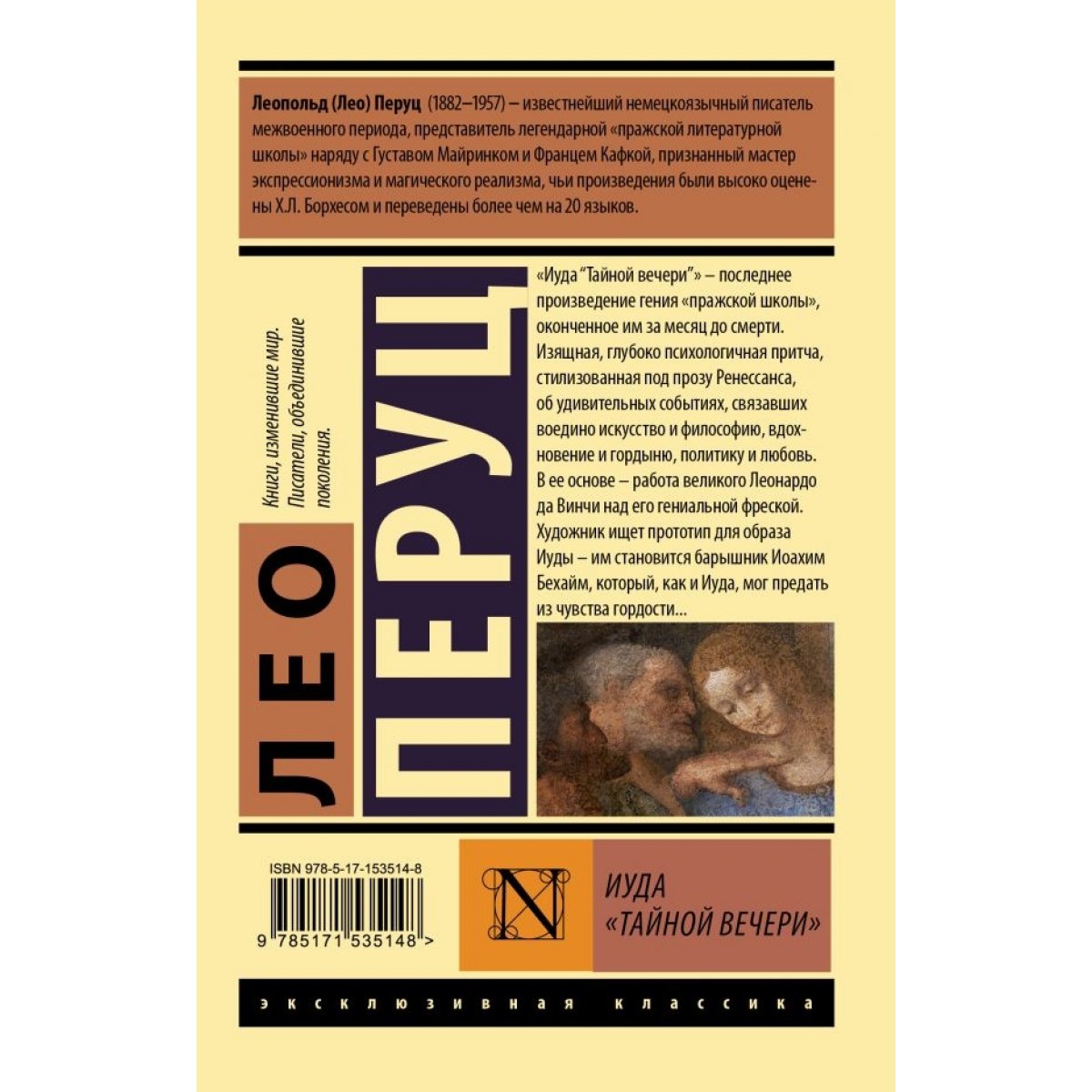 "Иуда “Тайной вечери”" — последнее произведение гения "пражской школы", оконченное им за месяц до смерти. Изящная, глубоко психологичная притча, стилизованная под прозу Ренессанса, об удивительных событиях, связавших воедино искусство и философию, вдохновение и гордыню, политику и любовь. В ее основе — работа великого Леонардо да Винчи над его гениальной фреской. Художник ищет прототип для образа Иуды — им становится барышник Иоахим Бехайм, который, как и Иуда, мог предать из чувства гордости…