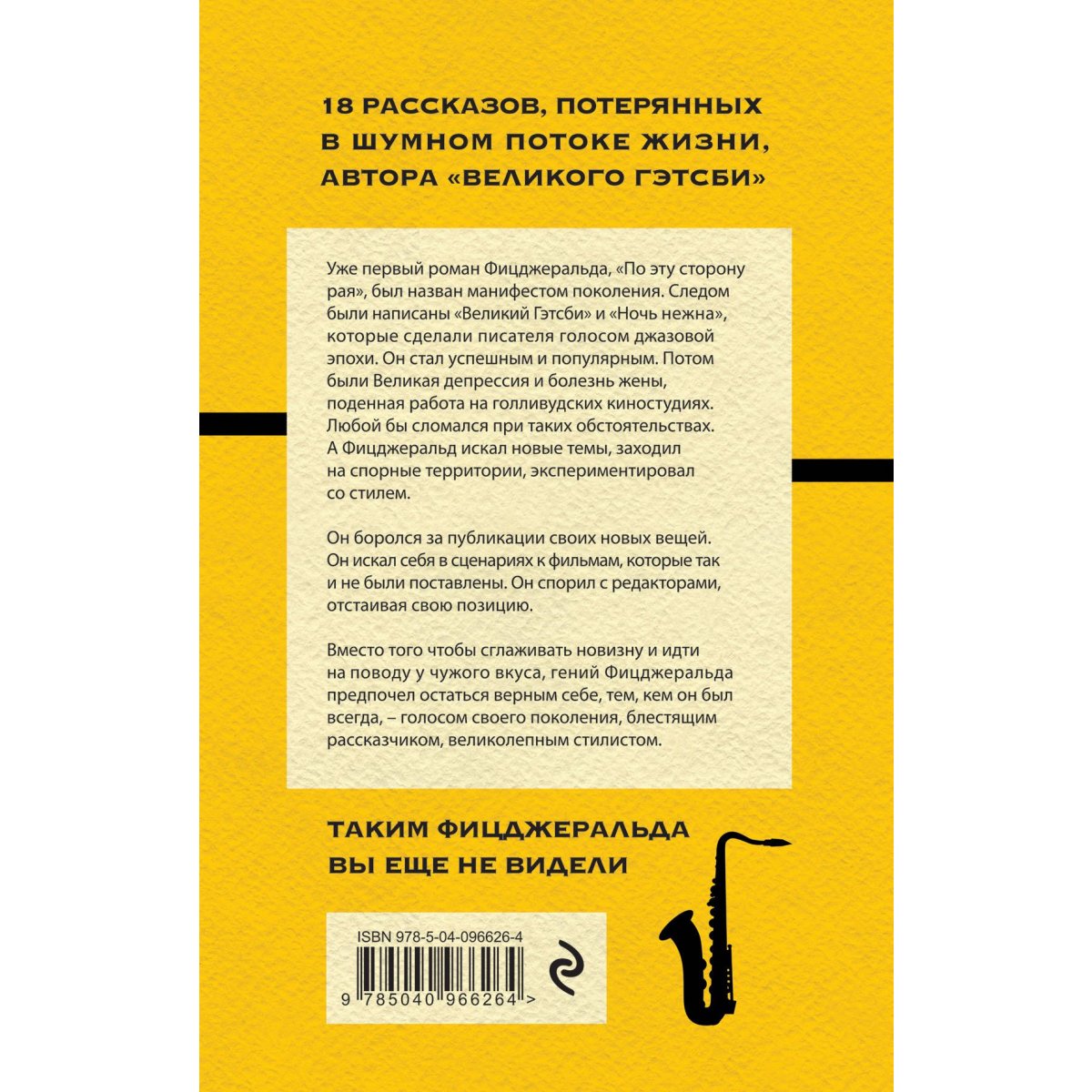 Уже первый роман Фицджеральда "По эту сторону рая" был назван манифестом поколения. Следом были написаны "Великий Гэтсби" и "Ночь нежна", которые сделали писателя голосом джазовой эпохи. Он стал успешным и популярным. Потом были Великая депрессия и болезнь жены, поденная работа на голливудских киностудиях. Любой бы сломался при таких обстоятельствах. А Фицджеральд искал новые темы, заходил на спорные территории, экспериментировал со стилем. Он боролся за публикации своих новых вещей. Он искал себя в сценариях к фильмам, которые так и не были поставлены. Он спорил с редакторами, отстаивая свою позицию. Вместо того чтобы сглаживать новизну и идти на поводу у чужого вкуса, гений Фицджеральда предпочел остаться верным себе, тем, кем он был всегда, - голосом своего поколения, блестящим рассказчиком, великолепным стилистом.Впервые на русском языке!В сборник вошли рассказы, оказавшиеся невостребованными потому, что не соответствовали ожиданиям литературных редакторов в то время" - рассказали журналистам The Guardian представители американского издательства "Скрибнер", ответственного за публикацию сборника, - "Фицджеральд в этих рассказах затронул неоднозначные темы. Его герои - молодые мужчины и женщины - открыто рассуждают о таких вещах, о каких едва ли говорили на самом деле". Фицджеральд предпочитал прятать работы в стол, нежели печатать с редакторскими правками. Он придерживался этого принципа даже в то время, когда остро нуждался в деньгах и внимании. Центральный расс...