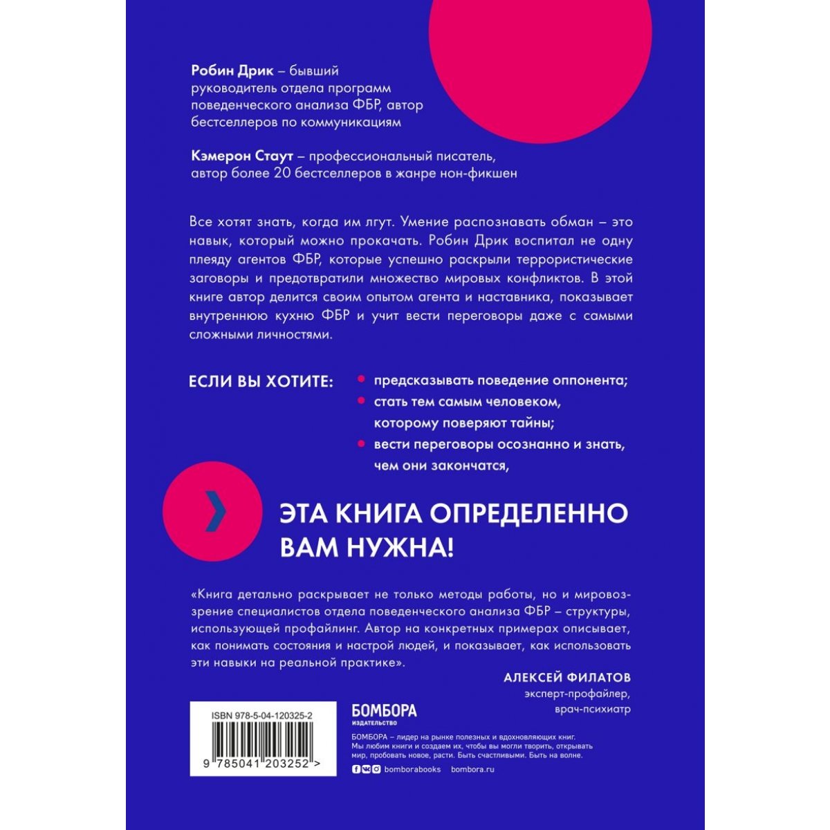 Все хотят знать, когда им лгут. Умение распознавать обман – это навык, который можно прокачать. Робин Дрик воспитал не одну плеяду агентов ФБР, которые успешно раскрыли террористические заговоры и предотвратили множество мировых конфликтов. В этой книге автор делится своим опытом агента и наставника, показывает внутреннюю кухню ФБР и учит вести переговоры даже с самыми сложными личностями.