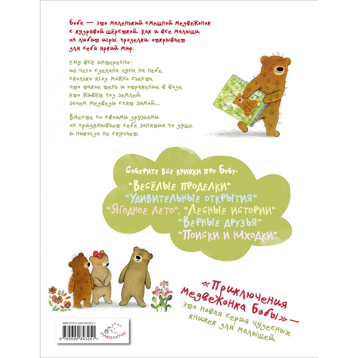 Познакомьтесь с Бобой. Этот забавный медвежонок открывает для себя мир и задает множество вопросов своим родителям - Мамурсе и Папурсу. Он и его подруга медведица Берта находят выход из самых невероятных ситуаций. Например, как найти обратную дорогу домой? Как проучить медведя-грубияна? Каждое приключение Бобы интересное и поучительное. В эту книгу вошли рассказы: - Боба объелся, - Боба и похититель мира, - Боба, Берта и Варвау. "Приключения медвежонка Бобы" - это новая серия чудесных книжек для малышей. Боба - это маленький смешной медвежонок с кудрявой шерсткой. Как и все малыши, он любит игры, проделки, открывает для себя яркий мир. Ему все интересно: из чего сделана луна на небе, сколько ягод можно съесть, что такое тень и отражение в воде, кто живет под землей, зачем медведи спят зимой... Вместе со своими друзьями он придумывает себе занятия по душе и никогда не скучает. Эти истории придуманы Робертом Пьюмини и...