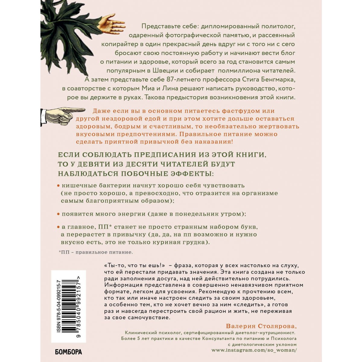 Эта книга – настоящий клад для тех, кто хочет изменить свою жизнь и не знает, с чего начать. Авторы подробно и просто рассказывают о научных открытиях, которые подвигли их изменить свою жизнь, и дают практические советы, как не сойти с ума от мыслей о подкрадывающихся недугах и превратиться из параноика в источник энергии. Здесь представлена масса прекрасных рецептов, благодаря которым ваша кишечная флора будет чувствовать себя счастливой, а вы станете бодрыми и здоровыми! На примере живых диалогов и жизненных ситуаций вы поймете, что все мы любим вкусно сытно поесть и при этом хотим обойтись без негативных последствий для здоровья. Лина и Миа научат вас объедаться овощами, полезными смузи и чипсами из брокколи, а также расскажут о пользе и истинном вкусе специй. Помимо всего этого авторы представят фаворитов целебного питания: их вы сможете всегда найти на полках в любом магазине, а ваш организм начнет ликовать и меняться в лучшую сторону! В дополнение ко всему вы получите массу практических рекомендаций и полезной информации о правильных жирах, клетчатке, гликемическом индексе и разгрузочных днях, и ваш рацион, режим питания и пищевые привычки изменятся без ущерба психологическому комфорту и физическому состоянию. Вперед, паста на морковной ботве и зеленые суперсмузи ждут вас! Прочитав эту книгу, вы узнаете: • Что за война между полезными и патогенными бактериями идет в прямой кишке – между положительным героем Люком Скайуокером и отрицательным персонажем Дартом Вейдером • ... Рекомендуем!