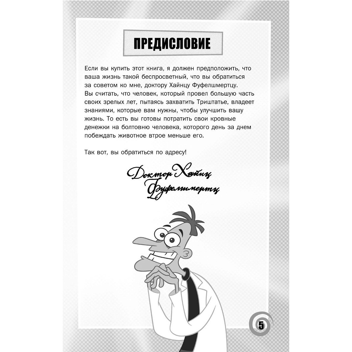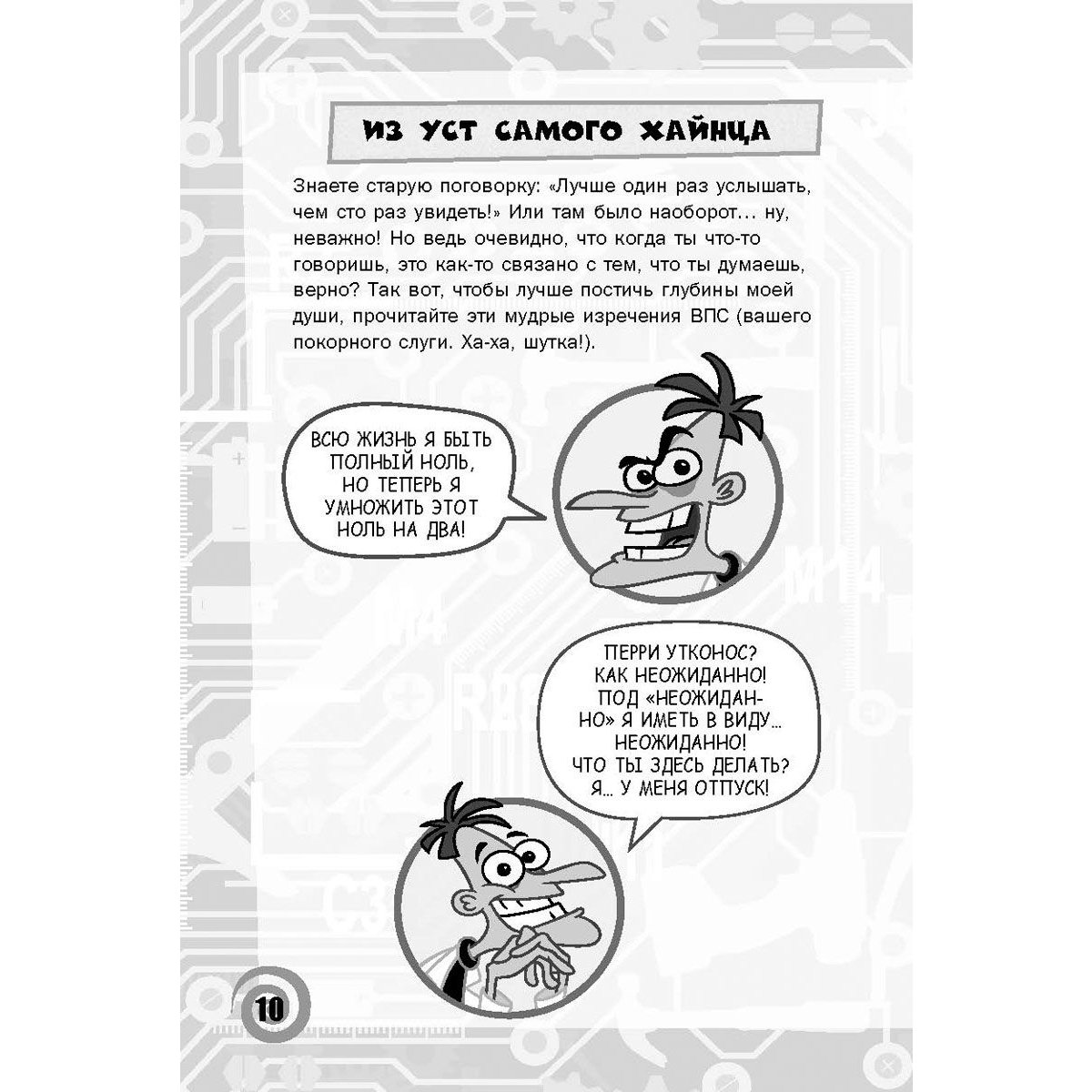 Если вам требуется зло, обращаться ко мне! Я, доктор Фуфелшмертц, есть прирожденный талант в данном деле! А вы нет. Вот почему я написать этот книга! Я поделиться секретами о том, что нужно, чтобы стать... э-э... мной! Мой гениальный книга помочь вам организовать ваш собственный тайный логово, избавиться от комплексов злого изобретателя, создать самый зловредный в мире -инатор и совершить столько злых дел, что прямо голова идти кругом! Ах да, конечно, и как я мочь забыть? Вы также узнать, как найти такого же врага, как мой Перри Утконос. В конце концов, что пользы от всех этих злых дел, если рядом нет кого-то вроде Перри, чтобы держать вас в тонусе, а?
