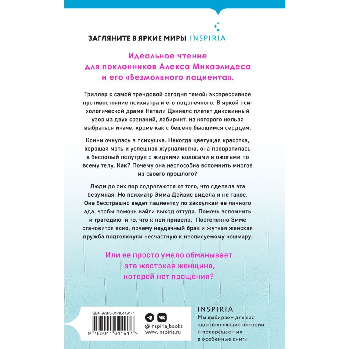 Идеальное чтение для поклонников Алекса Михаэлидеса и его «Безмолвного пациента». Триллер с самой трендовой сегодня темой: экспрессивное противостояние психиатра и его подопечного. В яркой психологической драме Натали Дэниелс плетет диковинный узор из двух сознаний, лабиринт, из которого нельзя выбраться иначе, кроме как с бешено бьющимся сердцем.