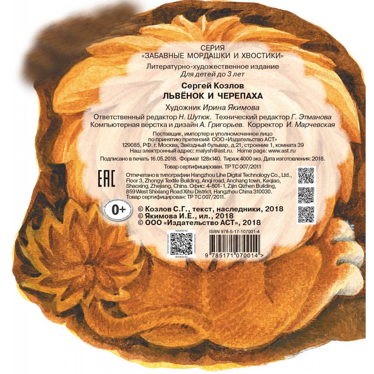 Аннотация: Эти стихи, без преувеличения, знают все наши взрослые и дети! Ведь они написаны чудесным детским писателем Сергеем Козловым и звучат в любимом всеми мультфильме «Как львенок и черепаха пели песню», на котором воспитано уже несколько поколений родителей. Формат книжки самый подходящий для маленьких детских ручек и для маминой сумочки, чтобы взять с собой в дорогу. Странички этой чудо-книжки прослужат дольше благодаря инновационному материалу EVA FOAM. Новая серия книг, в которой использована ставшая популярной среди родителей в сегменте 0-3 EVA FOAM, предназначена для самых маленьких читателей. В такие мягкие и яркие книжки будет не только приятно поиграть - серия дает возможность ребенку начать свое знакомство с классикой отечественной детской литературы уже с первых лет жизни. Одни из самых известных стихотворений С. Маршака, С. Козлова и А. Барто оформлены жизнерадостными и забавными иллюстрациями современной российской художницы Ирины Якимовой.