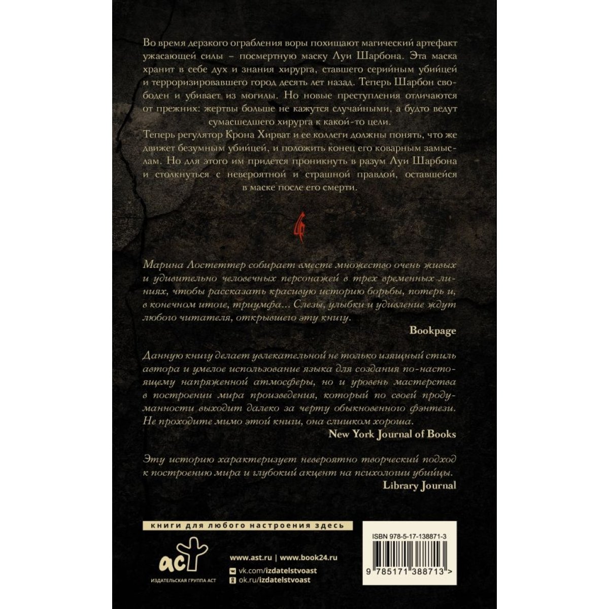 Во время дерзкого ограбления воры похищают магический артефакт ужасающей силы — посмертную маску Луи Шарбона. Эта маска хранит в себе дух и знания хирурга, ставшего серийным убийцей и терроризировавшего город десять лет назад. Теперь Шарбон свободен и убивает из могилы. Но новые преступления отличаются от прежних: жертвы больше не кажутся случайными, а будто ведут сумасшедшего хирурга к какой-то цели. Теперь регулятор Крона Хирват и ее коллеги должны понять, что же движет безумным убийцей, и положить конец его коварным замыслам. Но для этого им придется проникнуть в разум Луи Шарбона и столкнуться с невероятной и страшной правдой, оставшейся в маске после его смерти.