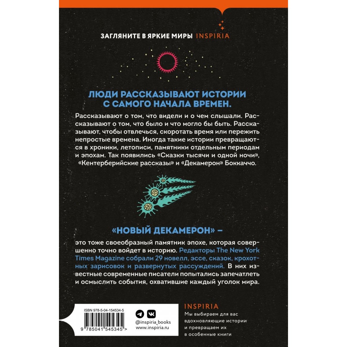 «Новый Декамерон» — это тоже своеобразный памятник эпохе, которая совершенно точно войдет в историю. Редакторы The New York Times Magazine собрали 29 новелл, эссе, сказок, крохотных зарисовок и развернутых рассуждений. В них самые известные современные писатели попытались запечатлеть и осмыслить события, охватившие каждый уголок мира.