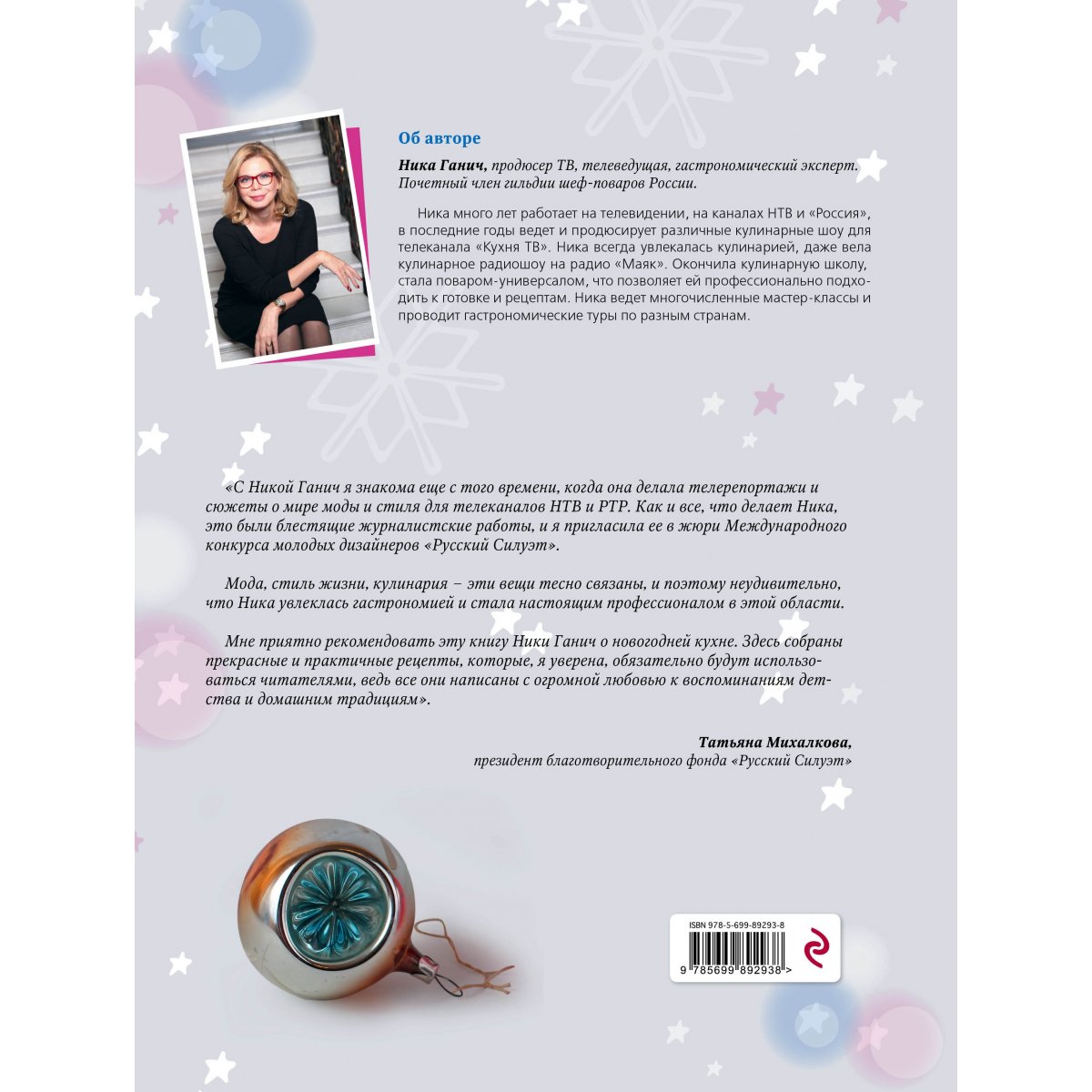 Известная журналист и телеведущая Ника Ганич предлагает свою личную историю новогоднего праздника. Книга потрясающе иллюстрирована: прекраснейшие фото блюд Анастасии Зурабовой, фото украшений стола и дома, подаренные Нике салонами и дизайнерскими компаниями, личные детские фото и открытки автора. Тексты написаны автором - первоклассным журналистом, а следовательно интересно рассказаны, а рецепты много раз приготовлены в ее доме и в кругу ее близких и друзей.