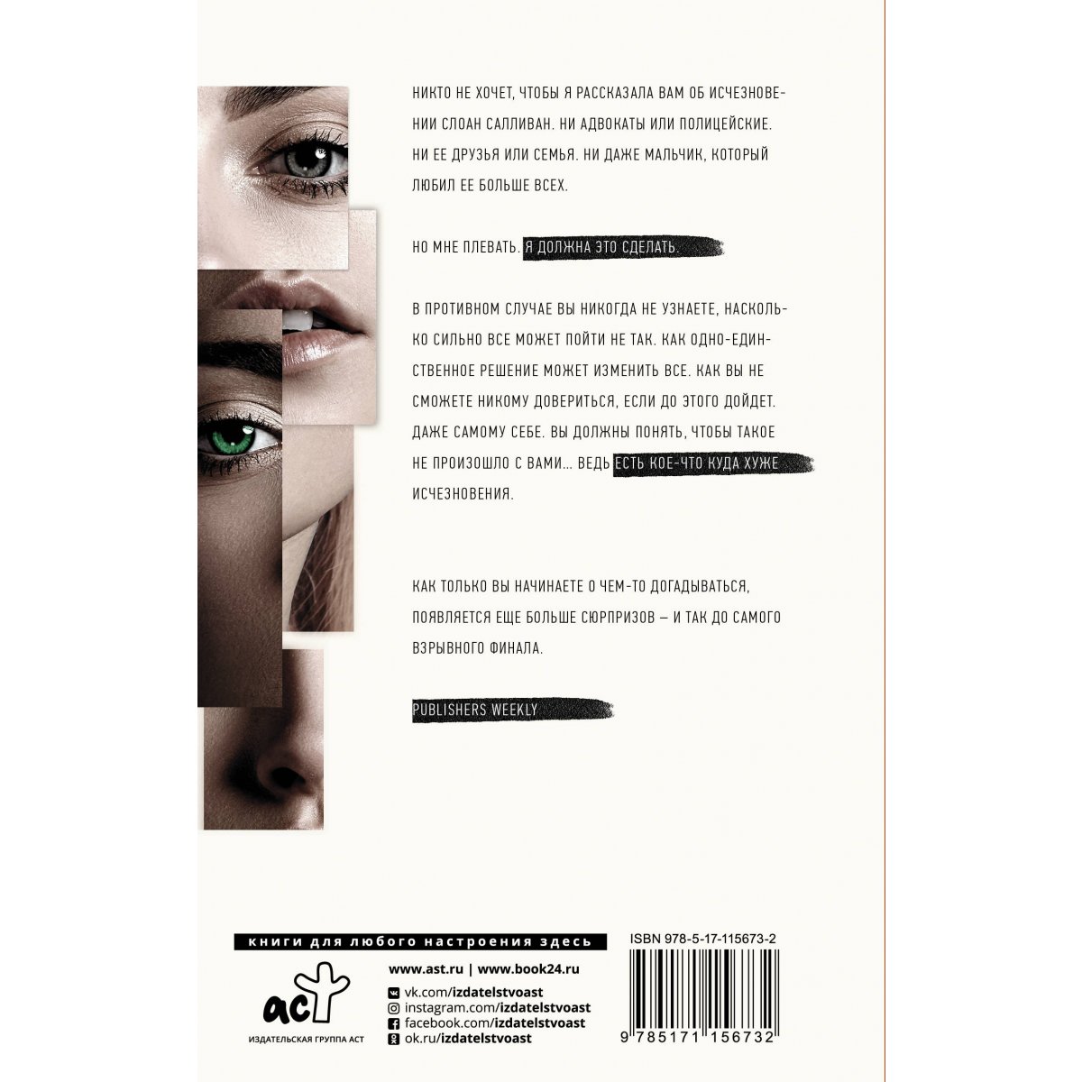 Никто не хочет, чтобы я рассказала вам об исчезновении Слоан Салливан. Ни адвокаты или полицейские. Ни ее друзья или семья. Ни даже мальчик, который любил ее больше всех. Но мне плевать. Я должна это сделать. В противном случае вы никогда не узнаете, насколько сильно все может пойти не так. Как одно-единственное решение может изменить всё. Как вы не сможете никому довериться, если до этого дойдет. Даже самому себе. Вы должны понять, чтобы такое не произошло с вами… Ведь есть кое-что куда хуже исчезновения.