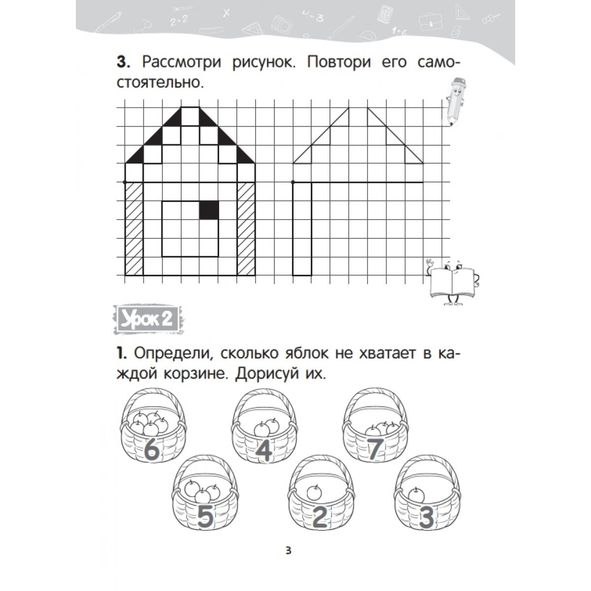 В тетради представлена поурочная система заданий по математике. С их помощью дети быстро освоят навыки счета, а также научатся решать задачи разных типов.