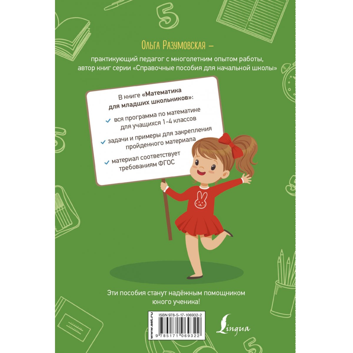 ?В книгу вошли все основные темы по математике, изучаемые в начальной школе: "Числа и цифры", "Арифметические действия", "Единицы измерения", "Скорость. Время. Расстояние", "Геометрические понятия" и другие. На отработку каждой темы дается множество примеров, веселых задач и увлекательных заданий. Материал составлен в соответствии с программой начальной школы и требованиями ФГОС.Пособие предназначено для младших школьников, а также станет хорошим помощником родителям, которые занимаются с детьми дома.