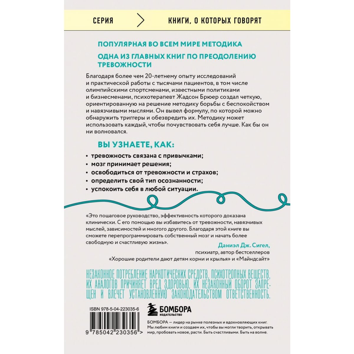 Тревога живет в той части мозга, которая сопротивляется рациональному мышлению. Мы застреваем в петлях привычек беспокойства, из которых не можем найти выход или бессильны использовать настойчивость. Психотерапевт с многолетней клинической практикой в области зависимостей рассказывает, как составить карту мозга, чтобы обнаруживать триггеры и обезвреживать их самостоятельно с помощью простой, но мощной практики любопытства. Вы научите мозг воспринимать окружающий мир более осознанно, что поможет вам справиться с тревогой и паникой.