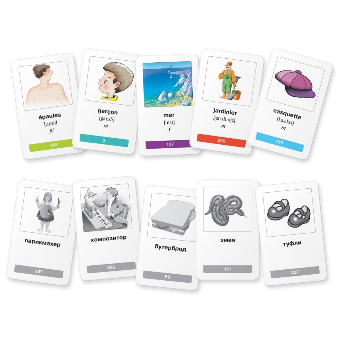 Комплект карточек предназначен для начинающих изучать французский язык. На карточках размещены наиболее употребимые французские слова, относящиеся к базовой лексике. Все слова разделены на тематические блоки, сопровождаются занимательными иллюстрациями и транскрипцией. Предлагаемая методика запоминания основана на связи французского и русского слова через картинку. Это позволяет выучить быстро и эффективно большое количество новых слов. В пособии предусмотрена возможность самостоятельного создания дополнительных карточек с использованием имеющихся в комплекте заготовок.