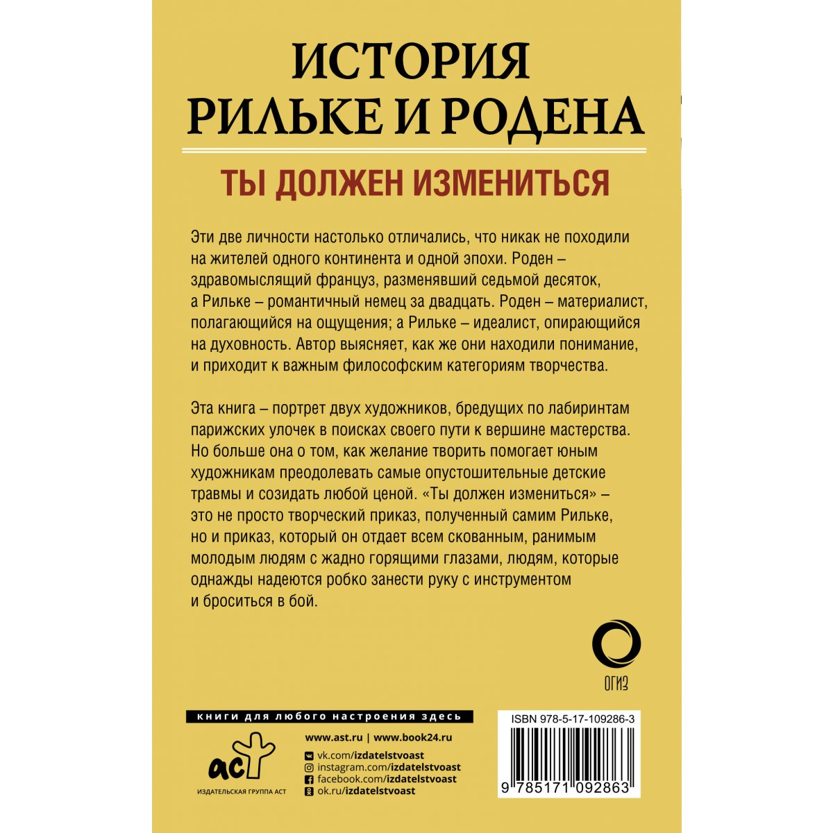 Эта книга – портрет двух художников, бредущих по лабиринтам парижских улочек в поисках своего пути к вершине мастерства. Но больше она о том, как желание творить помогает юным художникам преодолевать самые опустошительные детские травмы и созидать любой ценой. "Ты должен измениться" – это не просто творческий приказ, полученный самим Рильке, но и приказ, который он отдает всем скованным, ранимым молодым людям с жадно горящими глазами, людям, которые однажды надеются робко занести руку с инструментом и броситься в бой.