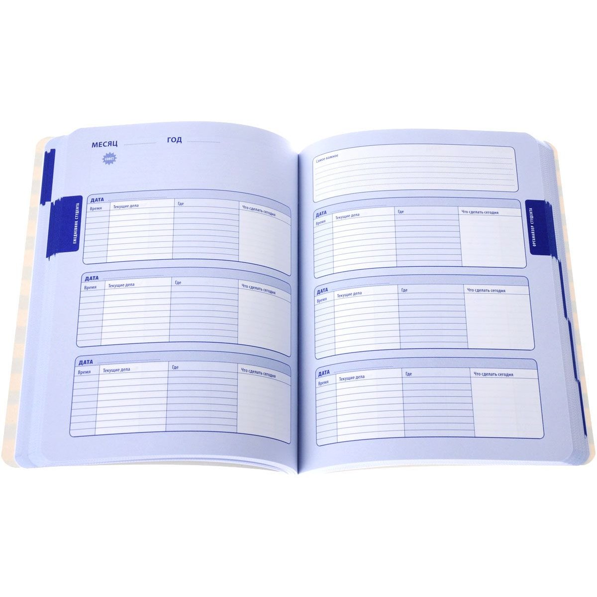 Стильный и красивый бизнес-ежедневник, который поможет студентам организовать свое время. В нем есть вся необходимая информация: от разделов для расписания занятий до специальных страниц, которые помогут контролировать расходы.