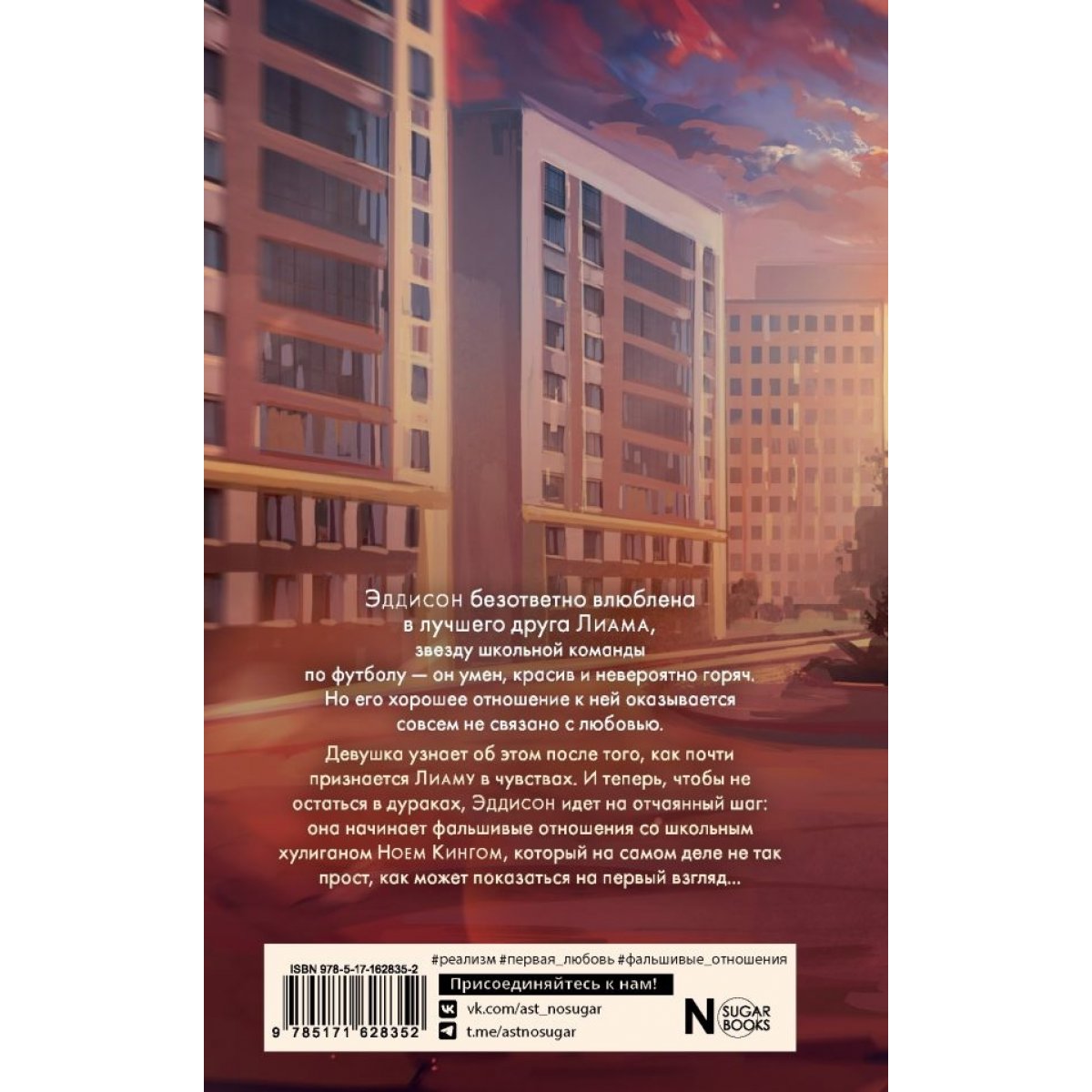 Эддисон безответно влюблена в лучшего друга Лиама, звезду школьной команды по футболу – он умен, красив и невероятно горяч. Но его хорошее отношение к ней оказывается совсем не связано с любовью. Девушка узнает об этом после того, как почти признается Лиаму в чувствах. И теперь, чтобы не остаться в дураках, Эддисон идет на отчаянный шаг: она начинает фальшивые отношения со школьным хулиганом Ноем Кингом, который на самом деле не так прост, как может показаться на первый взгляд... От любви до ненависти один шаг, а сколько их в обратном направлении?