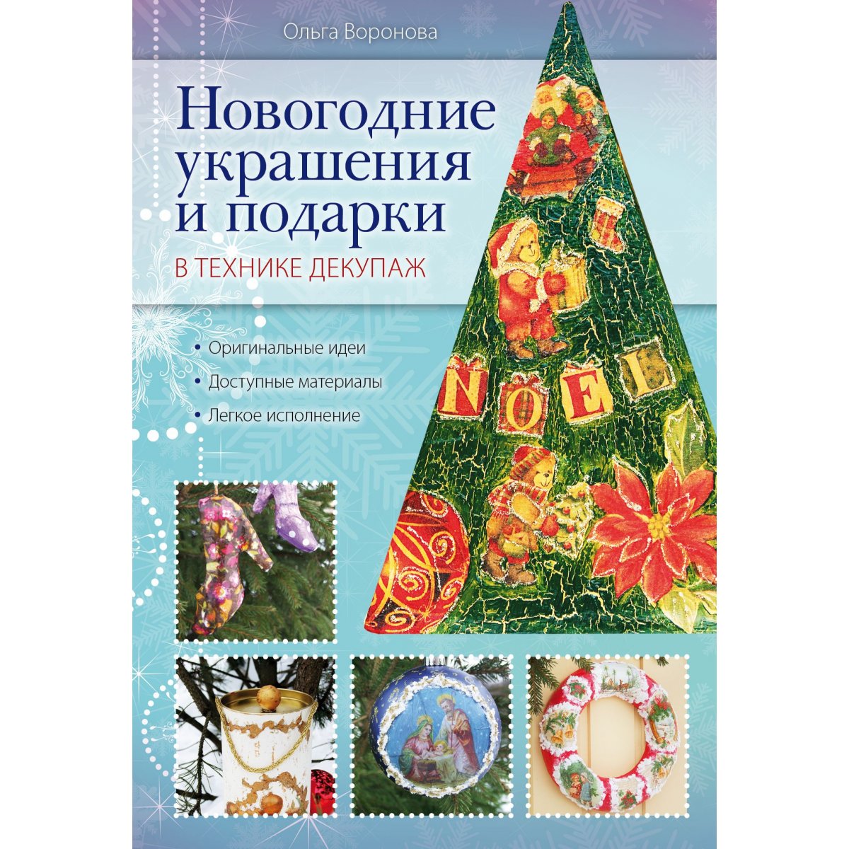 В преддверии новогодних праздников так хочется украсить дом, нарядить елку, подготовить подарки для родных и друзей! К сожалению, именно в это время в магазинах выстраиваются огромные очереди, а предлагаемые производителями товары зачастую безвкусны и неоправданно дороги. Возможно, именно поэтому многие рукодельницы все чаще отказываются от от покупных украшений и подарков и предпочитают в период предновогодней суеты заняться творчеством, получая огромное удовольствие от процесса и не меньшее наслаждение от результатов своего труда. Если вы любите делать что-то своими руками и хотите незабываемо встретить Новый год, предлагаем вам обратить свое внимание на декупаж - невероятно красивую и при этом несложную в освоении декоративную технику, позволяющую за считанные минуты превращать обычные вещи в произведения искусства. На страницах этой книги вы найдете порядка двадцати отличных новогодних идей по изготовлению елочных украшений, подарочной упаковки, элементов сервировки...