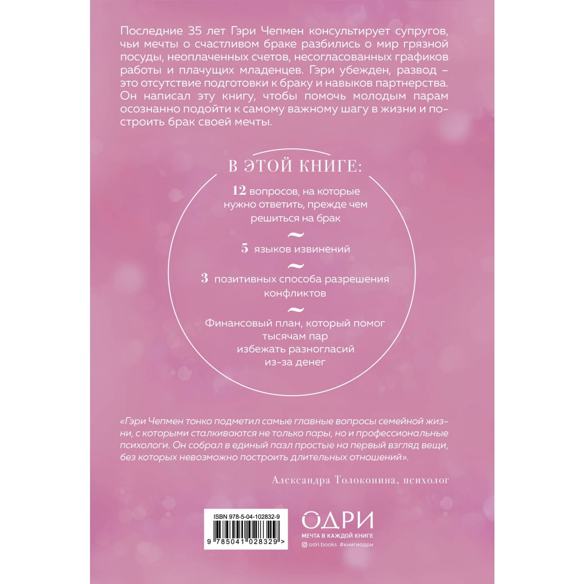 Последние 35 лет Гэри Чепмен консультирует супругов, чьи мечты о счастливом браке разбились о мир грязной посуды, неоплаченных счетов, несогласованных графиков работы и плачущих младенцев. Гэри убежден: развод – это отсутствие подготовки к браку и навыков партнерства.