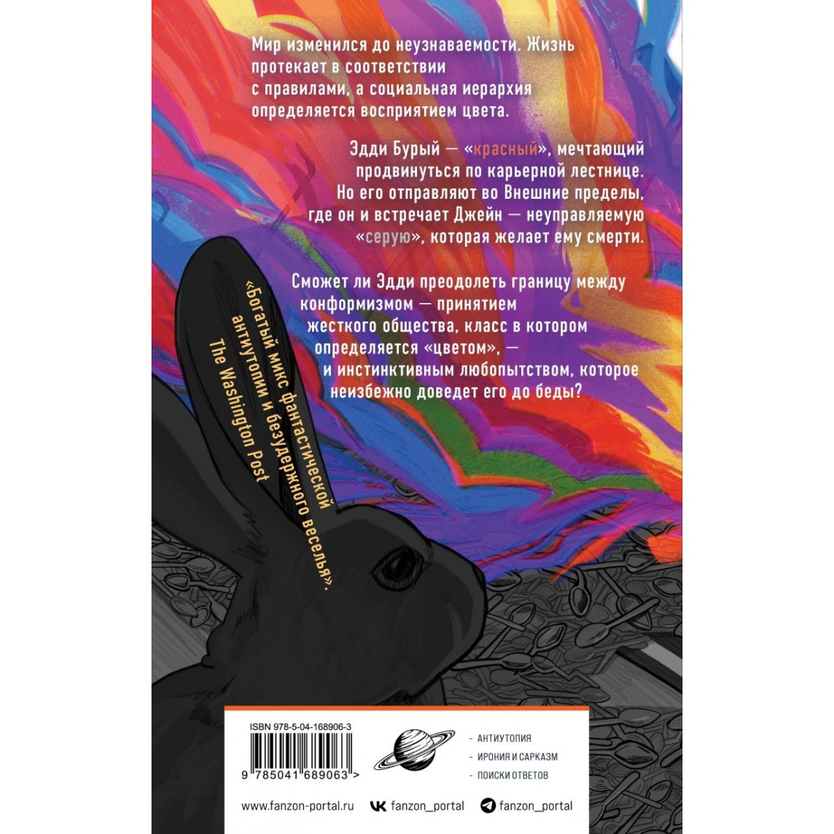 Молодой Эдди Бурый не стремится быть кем-то иным, кроме как верным трутнем Коллектива. С его более тонким восприятием красного цвета он вполне может жениться на Констанс Марена и унаследовать завод ее семейства. Возможно, у него даже хватит красного восприятия, чтобы занять должность перфекта. Для Эдди жизнь выглядит красочно. Жизнь выглядит хорошо. Но все меняется, когда он вместе с отцом, уважаемым цветоподборщиком, переезжает в Восточный Кармин. Там он влюбляется в «серую» по имени Джейн, которая открывает ему глаза на болезненную правду, скрываемую в кажущемся идеальным, но жестко контролируемом обществе. Любопытство — опасная черта, которую не стоит проявлять, — берет верх над Эдди, и он начинает задавать вопросы. Почему не хватает ложек? Что случилось с теми, кто не вернулся из Верхнего Шафрана? И почему, когда вы начинаете задаваться вопросом об окружающем мире, черно-белая определенность сводится к оттенкам серого?