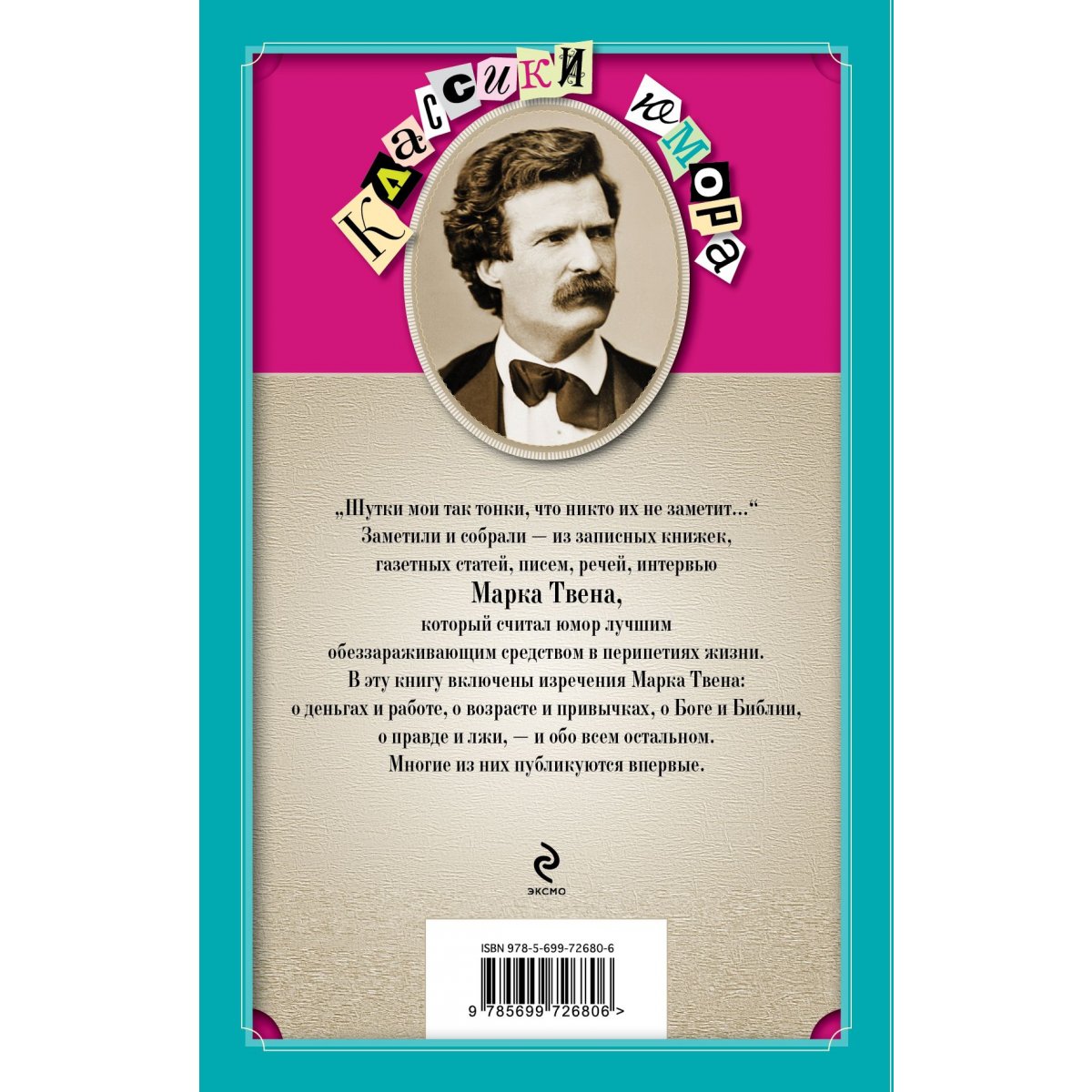 "Шутки мои так тонки, что никто их не заметит". Заметили и собрали из записных книжек, газетных заметок, писем, речей, интервью Марка Твена, который считал юмор лучшим обеззараживающим средством в перипетиях жизни. В эту книгу включены изречения Марка Твена: о деньгах и работе, о возрасте и привычках, о Боге и Библии, о правде и лжи, - и обо всем остальном. Многие из них публикуются впервые.