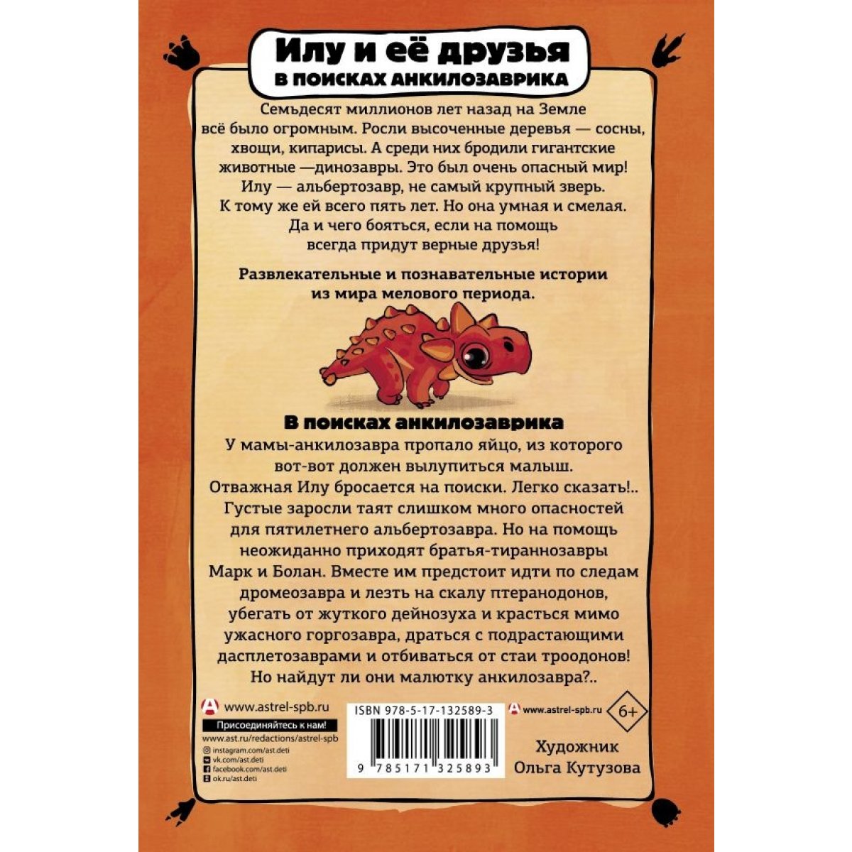 70 миллионов лет назад на Земле всё было огромным. Росли высоченные деревья – сосны, хвощи, кипарисы. А среди них бродили гигантские животные – динозавры. Это был очень опасный мир! Илу – альбертозавр, не самый крупный зверь. К тому же ей всего пять лет. Но она умная и смелая. Да и чего бояться, если на помощь всегда придут верные друзья! Развлекательные и познавательные истории из мира мелового периода.