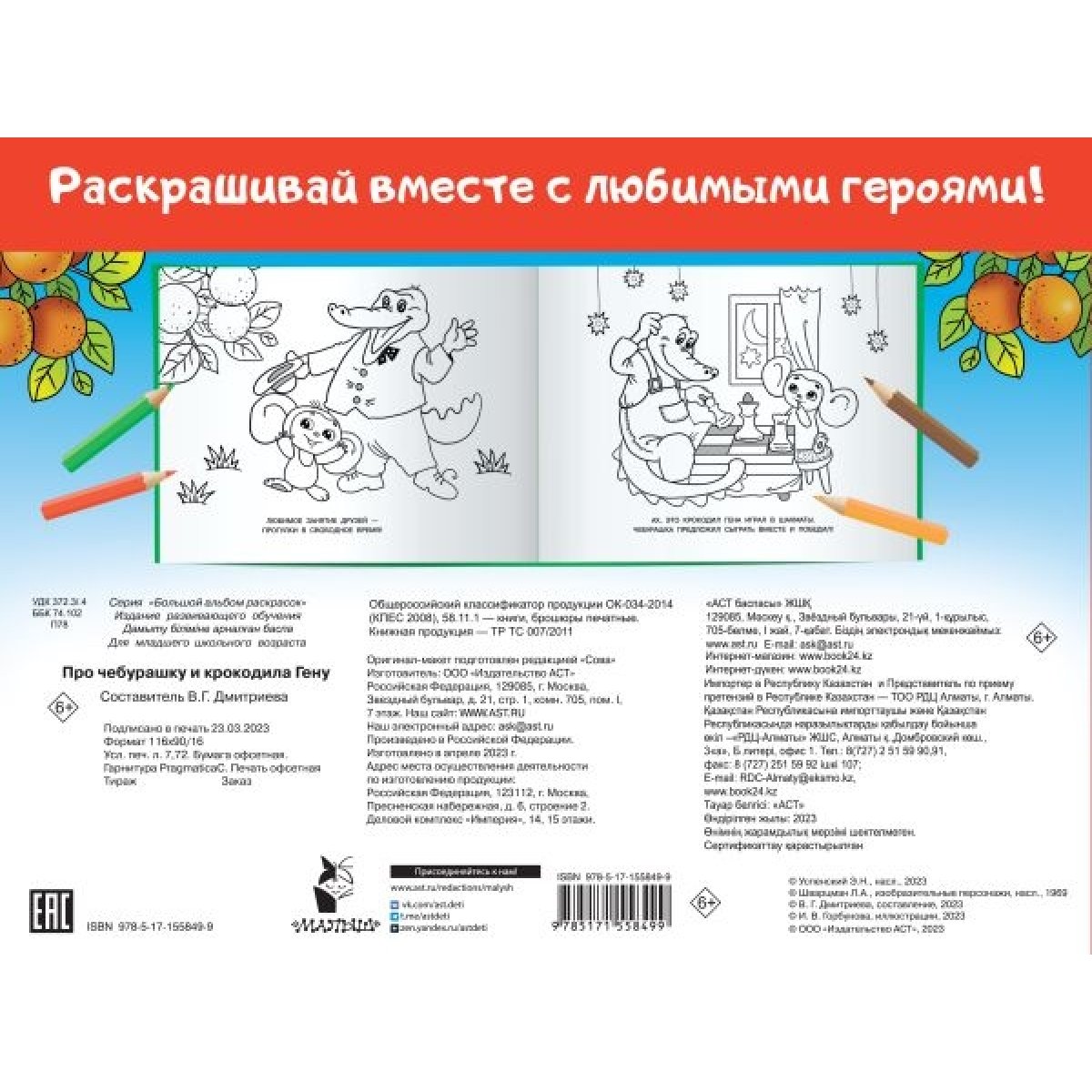 "Про Чебурашку и крокодила Гену" — весёлая раскраска о любимых героях. Под обложкой 62 замечательные иллюстрации. Раскрашивая, малыш разовьёт мелкую моторику, внимание и воображение, подготовит руку к письму, станет более аккуратным. Но главное, что юному художнику не будет скучно! Ведь ребёнок погрузится в мир любимой сказки.