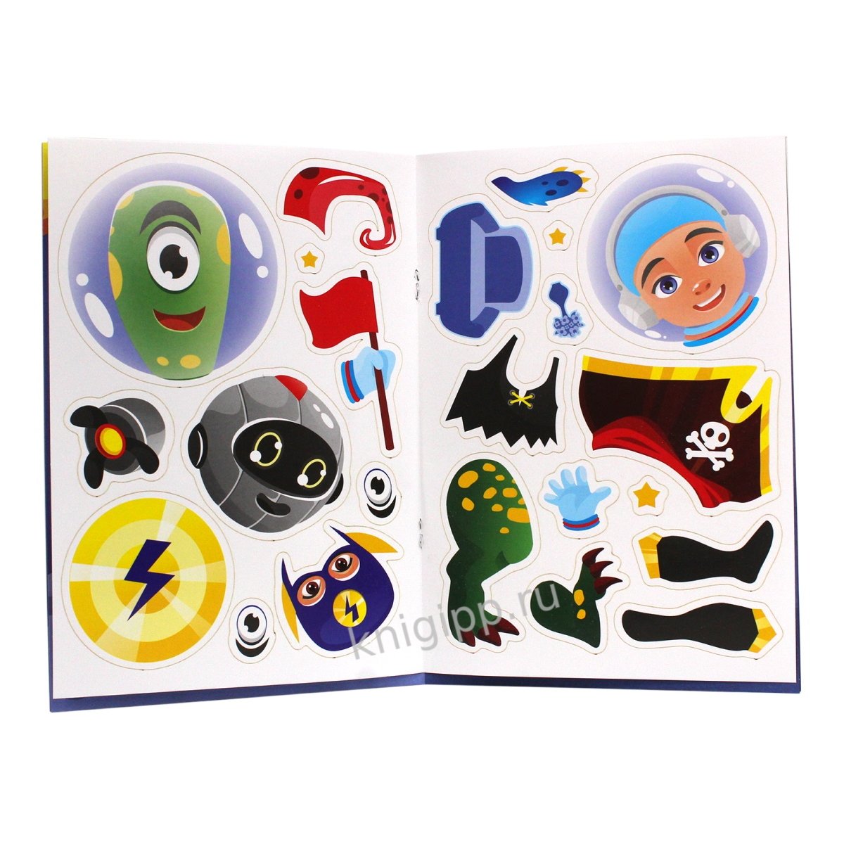 Посмотри на эти яркие картинки! Милым персонажам на них чего-то не хватает. Угадай, какую деталь нужно добавить, найди ее на листе с наклейками и приклей.