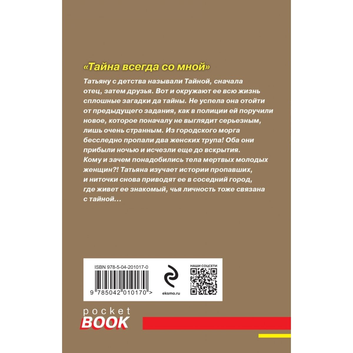 Татьяну с детства называли Тайной, сначала отец, затем друзья. Вот и окружают ее всю жизнь сплошные загадки да тайны. Не успела она отойти от предыдущего задания, как в полиции ей поручили новое, которое поначалу не выглядит серьезным, лишь очень странным. Из городского морга бесследно пропали два женских трупа! Оба они прибыли ночью и исчезли еще до вскрытия. Кому и зачем понадобились тела мертвых молодых женщин?! Татьяна изучает истории пропавших, и ниточки снова приводят ее в соседний город, где живет ее знакомый, чья личность тоже связана с тайной…